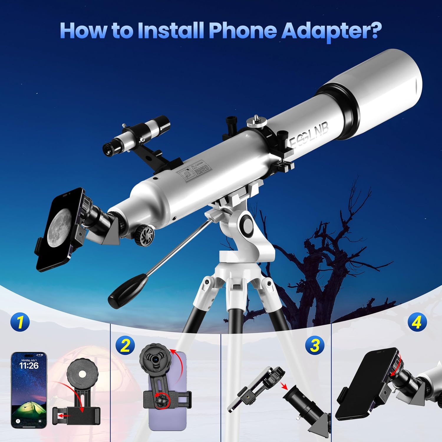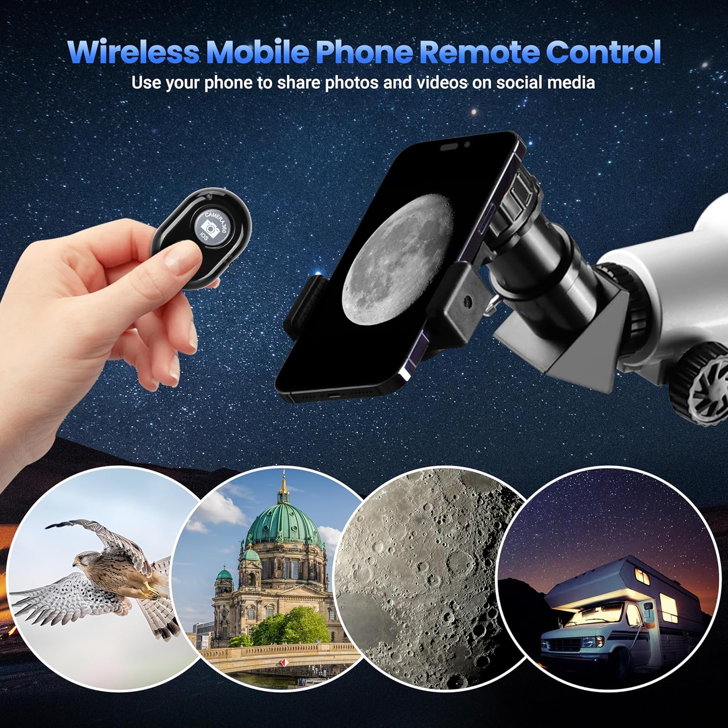 | BuiltIn Media | Moon Filter, Phone Adapter, Stargazing APP, Telescope |