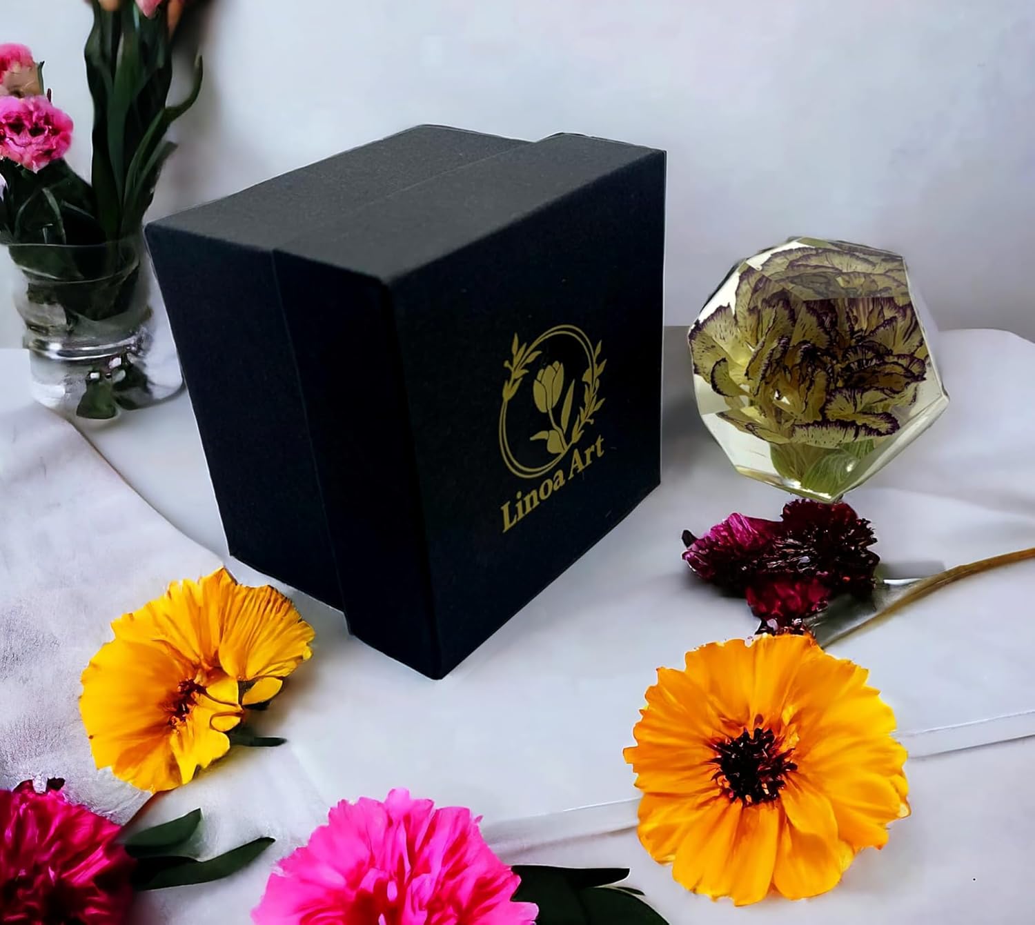 Introduce a touch of timeless beauty and elegance into your home decor with our exquisite preserved Carnations encapsulated in crystal-clear resin. Handcrafted with meticulous attention to detail, each Carnation is a stunning work of art that captures the ethereal essence of nature's finest blooms. Versatile Beauty: Whether used as a centerpiece, a decorative accent, or a thoughtful gift, these resin-encapsulated carnations are a true statement piece. Their unique fusion of natural beauty and contemporary artistry adds an air of sophistication and charm to any living space or office setting, complementing a wide range of interior design styles. Lasting Elegance: Unlike fresh flowers that wilt and fade, these preserved carnations encapsulated in resin offer a timeless elegance that will endure for years to come. Requiring no maintenance or special care, they are a hassle-free way to enjoy the captivating beauty of nature's finest blooms, without the worry of wilting or fading. Unique Treasures: Each piece is a one-of-a-kind masterpiece, ensuring that your purchase is truly a rare and precious treasure. These resin-encapsulated carnations make exceptional gifts for floral enthusiasts, nature lovers, or anyone who appreciates the fusion of art and nature.