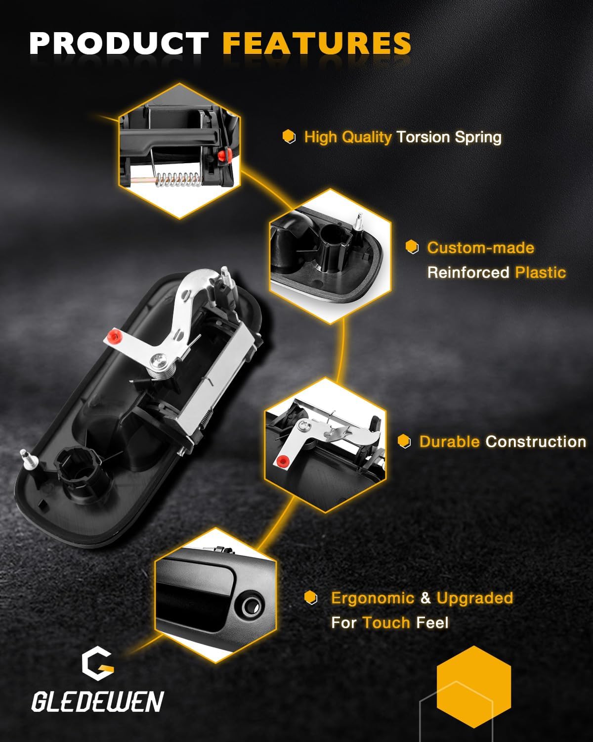 | Included Components | Outside Front Left Driver Side Door Handle, Outside Front Right Passenger Side Door Handle, Outside Rear Right Passenger Side Door Handle |