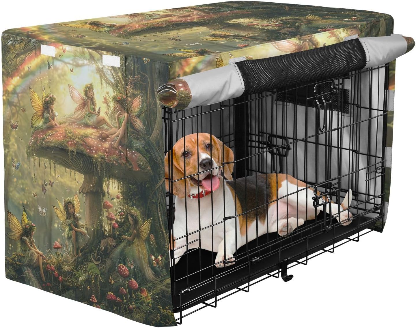 Protection – Made from 600D silver-coated oxford fabric, this pet kennel cover provides reliable protection against weather conditions, including wind and rain. It prevents your dog from scratching the crate and blocks harmful UV rays.Easy Installation – This pet cage cover features a user-friendly fastening system, allowing for quick installation without tools. It securely attaches to your dog crate, ensuring it stays in place for continuous protection.Effective Ventilation – Mesh windows on every side of the crate cover allow for steady airflow, keeping your dog comfortable and well-ventilated while inside. This design ensures your pet has a cool and breathable environment.Secure Fit – Equipped with four tie-down straps, the cover stays firmly in place, preventing it from shifting or being blown away. This added stability makes it suitable for outdoor use even in windy conditions.Ideal for Multiple Uses – This versatile travel pet crate cover is Suitable for both indoor and travel use. Whether you’re at home, on a road trip, or camping, it offers a practical solution for protecting your pet’s crate.