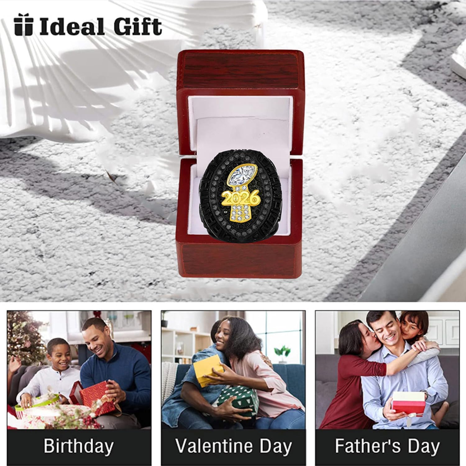 Product description Product Description Features: Crafted with meticulous attention to detail, this FFL ring exudes elegance and prestige. Its bold design features intricate engravings that celebrate the thrill of fantasy football, while proudly displaying the unmistakable emblem of the Fl Champions. Great for collectors, this ring also complements rugby collections, club memorabilia or ncaa keepsake displays, making it perfect to wear in your home, office or personal space. GREAT AS A FOOTBALL GIFT FOR MEN, this fantasy championship ring is more than just an accessory - it's a meaningful fantasy football keepsake designed for rugby fans and football enthusiasts. Its vintage style and distinctive design make it an exceptional piece for any man. As a novelty and vintage ring for men, it combines timeless appeal with a modern twist, suitable for everyday wear or display in your collection. Specifications: Name: Fantasy Football Championship Ring 2026 Material: metal. Weight: 150g/pc(with wood) Sizes: 9#, 11#, 13# Product includes: 1 × Fantasy League Ring 2026 1 × Wooden Gift Box Measurement Instructions: 1. Wrap your finger with a wide strip of paper. 2. Mark the junction with a pen. 3. Measure its length with a ruler. If you have any questions after receiving the product, please send us an email and we will reply within 24 hours to ensure you a satisfactory shopping experience. Manufacturer Contact Information [email protected] Please go to our store homepage to see it.