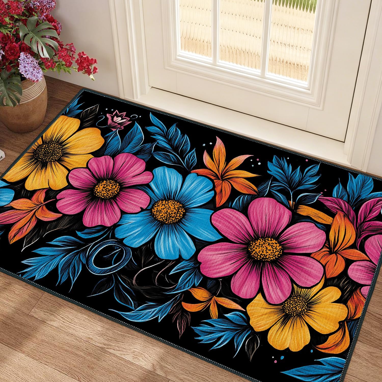 Floral Animal Plush Carpet - Non-Slip Soft Floor Rug Living Room Bedroom Washable Home Decor (Floral-7, 24x35 inches)