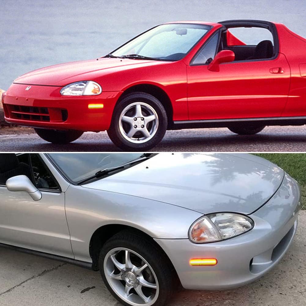 Fitment: ►Compatible with 1993-1997 Honda Civic Del Sol. Feature : ►Lens Color: Smoked. ►LED Color: Amber. ►Voltage: 12V. Fully sealed, prevent water leaking inside effectively. Installation: ►Simple Plug N' Play: Direct Replacement, No Modification Required DOT SAE approved; It works at 12V~24V DC. Exact fit and direct replacement, super bright LEDs have a faster on/off response time for driving safety & perfect design enhances your car's exterior look. Package Includes: ►2 x Side marker lights. Note:If you have any questions , please do not hesitate to tell us by clicking "Ask seller question" from "Meet the Seller" section on the right top corner.Your mail will be guaranteed reply within 24 hours, Emails on weekend and holiday will be reply on the following business day.