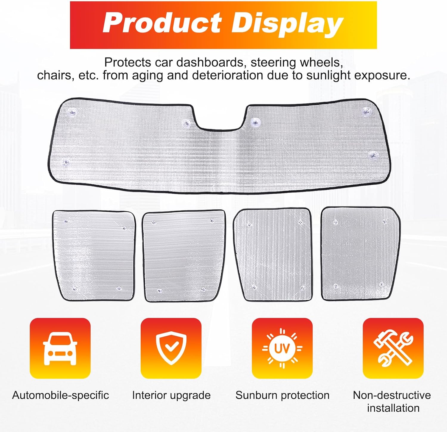 | Included Components | 1 Kit/set of 4 Piece sunroof shade and 1 Piece car shade front windshield |