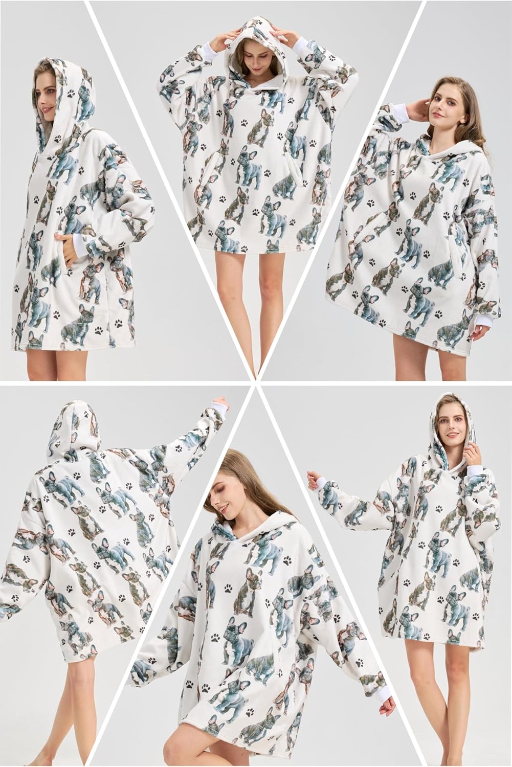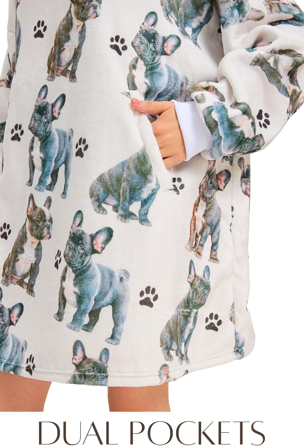 Huglanket French Bulldog Gifts for Women, French Bulldog Mon Wearable Hooded Blanket, One Size, Black