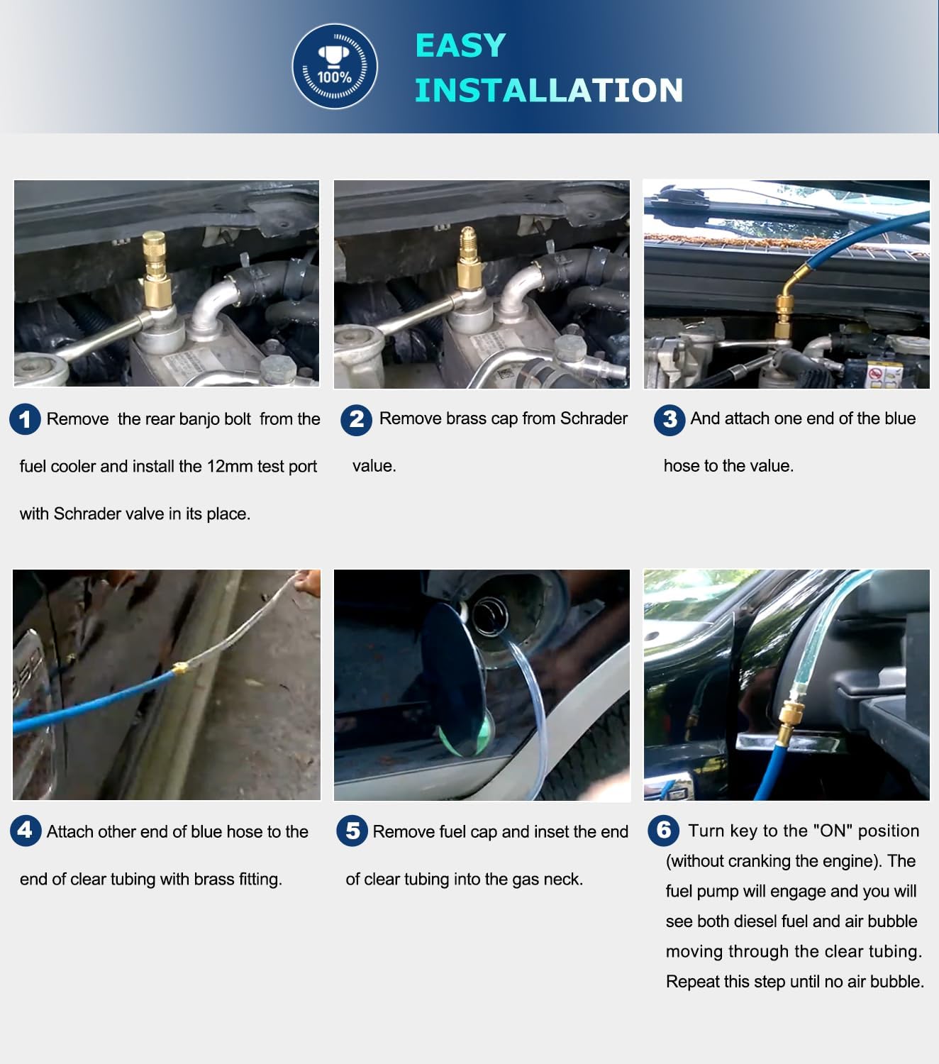 | Included Components | 1 * Extended Length Transparent Poly Hose (SEE BUBBLE CLEARLY); 2 * Extended Length Hose with Schrader Valve Connection; 1 * 12mm Banjo Bolt Test Port; 1 * 2 X Washers. |