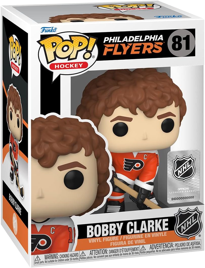 Bring home NHL legend, Bobby Clarke, of the Philadelphia Flyers, into your National Hockey League collection with this Pop! Vinyl figure is approximately 4.25-inches tall.