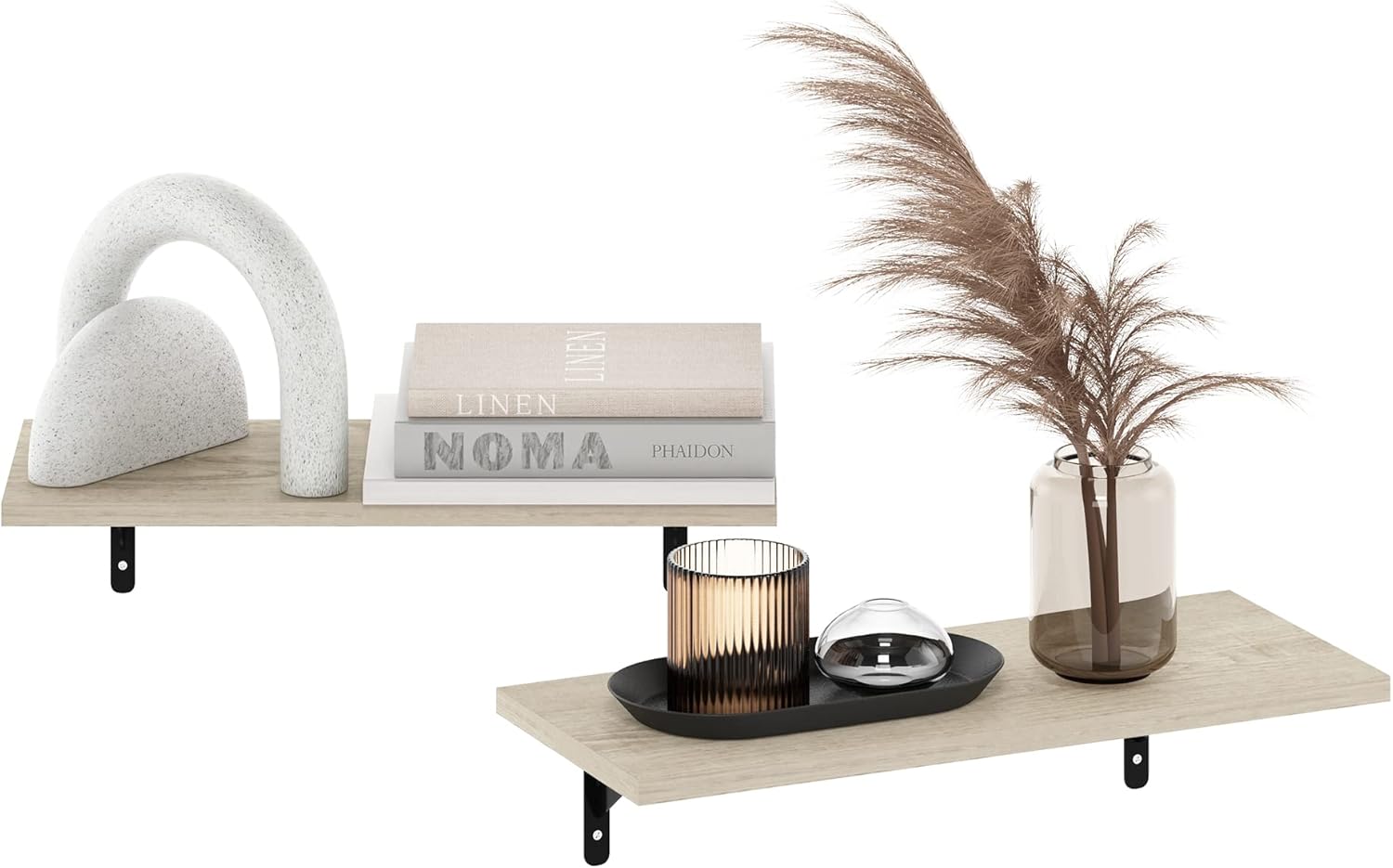• EASY INSTALLATION: The floating shelf set comes with step-by-step instructions, labeled parts, and mounting hardware for a straightforward setup on wood studs or wall anchors, so the wall shelves install cleanly and securely. Built with FSC-certified wood, it unites sustainable materials and refined craftsmanship to deliver long-term durability and reliable use