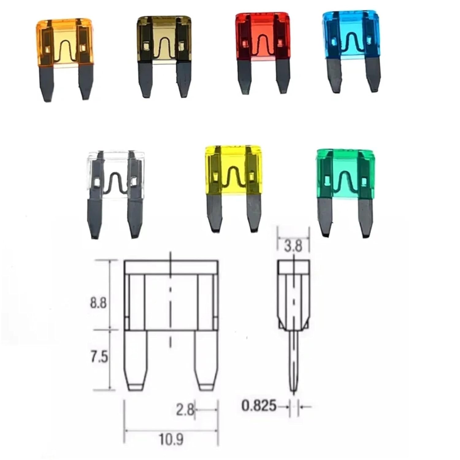 Fuses / Fuse LinksFuses Standard Mini Car Fuse 2A 3A 5A 7.5A 10A 15A 20A 25A 30A 35A 40A Amp Clip Fuse Set For Car Truck Mini Small Medium 10PcsMaterial : AlloyBreaking Capacity : HighModel Number : Mini Small Medium FuseUse : Automotive