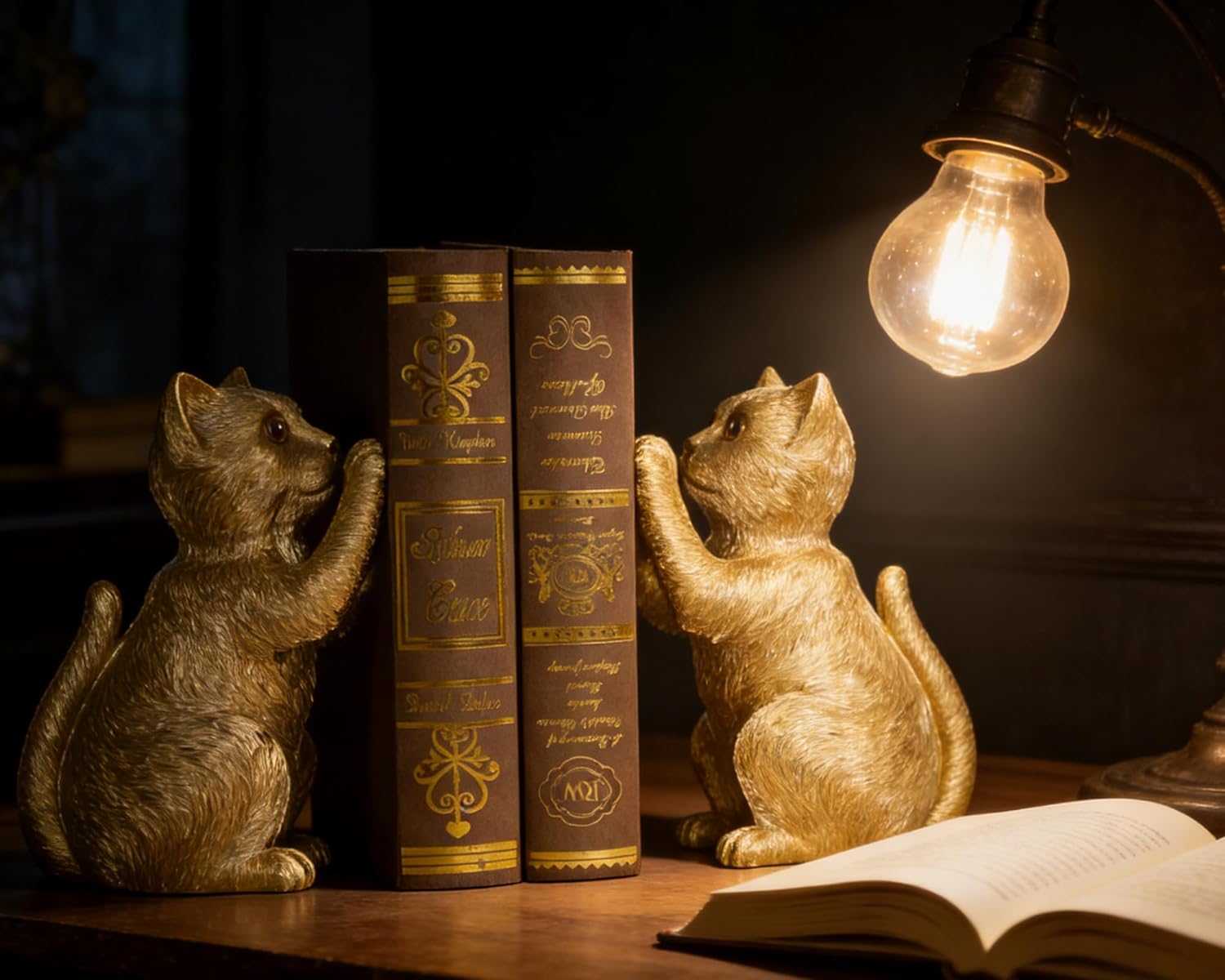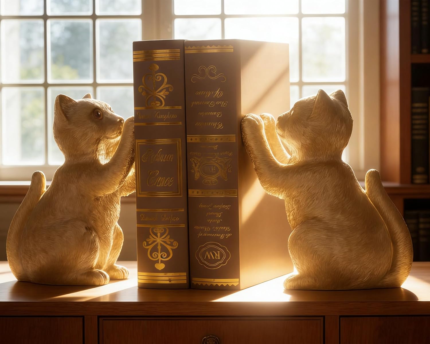 Cat Lover’s Happy Place: Every cat person will smile seeing these playful kitties. They’re more than book holders – they bring joy and feel like little friends watching over your stories