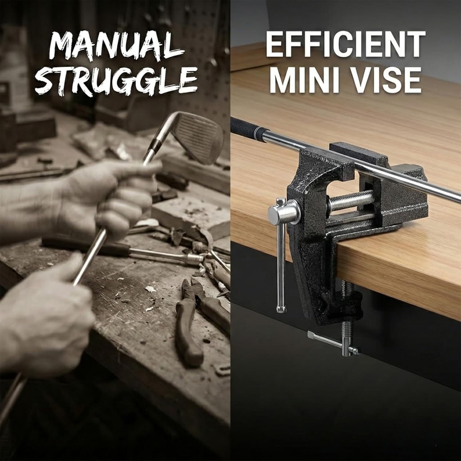 Description:This heavy-duty golf club regripping vise clamp is an essential tool for at-home golf club maintenance and repair. Constructed from durable carbon steel in a sleek black finish, it features a quick-release design and a drill-free table mount that securely attaches to any workbench without screws or damage. The quench-hardened jaws provide a stable, scratch-free grip on golf shafts, making regripping, adjustments, and repairs efficient and safe for golfers of all skill levels.Specifications:Material: Heavy-duty carbon steelColor: BlackWeight: 1.76 lbs (800g)Overall Length: 4.2 in (10.7cm)Overall Height: 4.8 in (12.1cm)Jaw Opening: 1.4 in (3.5cm)Table Clamp Capacity: 1.4 in (3.5cm)Design: Quick-release, drill-free table mount, quench-hardened jawsPackage Includes:1 x Golf Club Regripping Vise Clamp