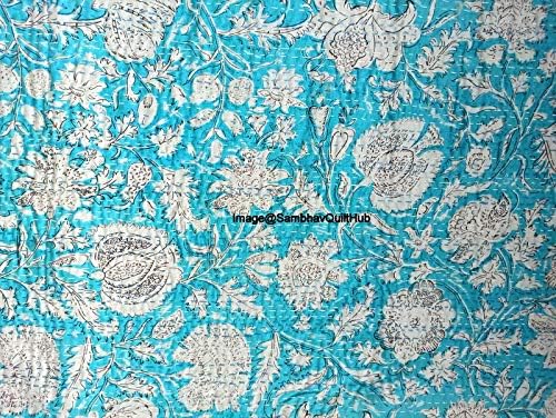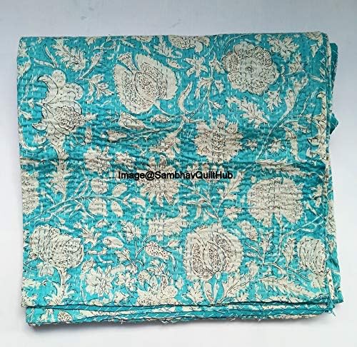 Made with 100% cotton and natural vegetable colors. This piece is of art is completely hand stitched by Women artisan in Rajasthan, India. It can make any room alive with its vivid colors, stunning Handblock Bird Floral print and embroidery, made using traditional and famous kantha hand embroidery method. Made from two thin layer of cotton fabric make this piece of art irresistible and also very comfortable. Adding to it's style, this kantha quilt is reversible and both sides can be used. Kantha is still the most popular form of embroidery practiced by rural women.typically use old saris and cloth and layer them with kantha stitch to make a light blanket, throw or bedspread. These cotton lightweight "Quilts" with a beautiful and colorful Paisley design can be used as 1. Bedspread , Bedding Throw , Blanket Or Quilt 2. A Summer Bed Cover 3. A Throw 4. A Fabulous Picnic Rug 5. Nice Bedroom Quilt , This can fit to a 90 x 108/60*90/108X108 inch's wide King/Twin size bed as blanket or throw or can easily fit as bedspread / bed cover to King/Twin bed .Size Twin (60X90), Queen Size (90X108 inch), King Size (108X108) inch