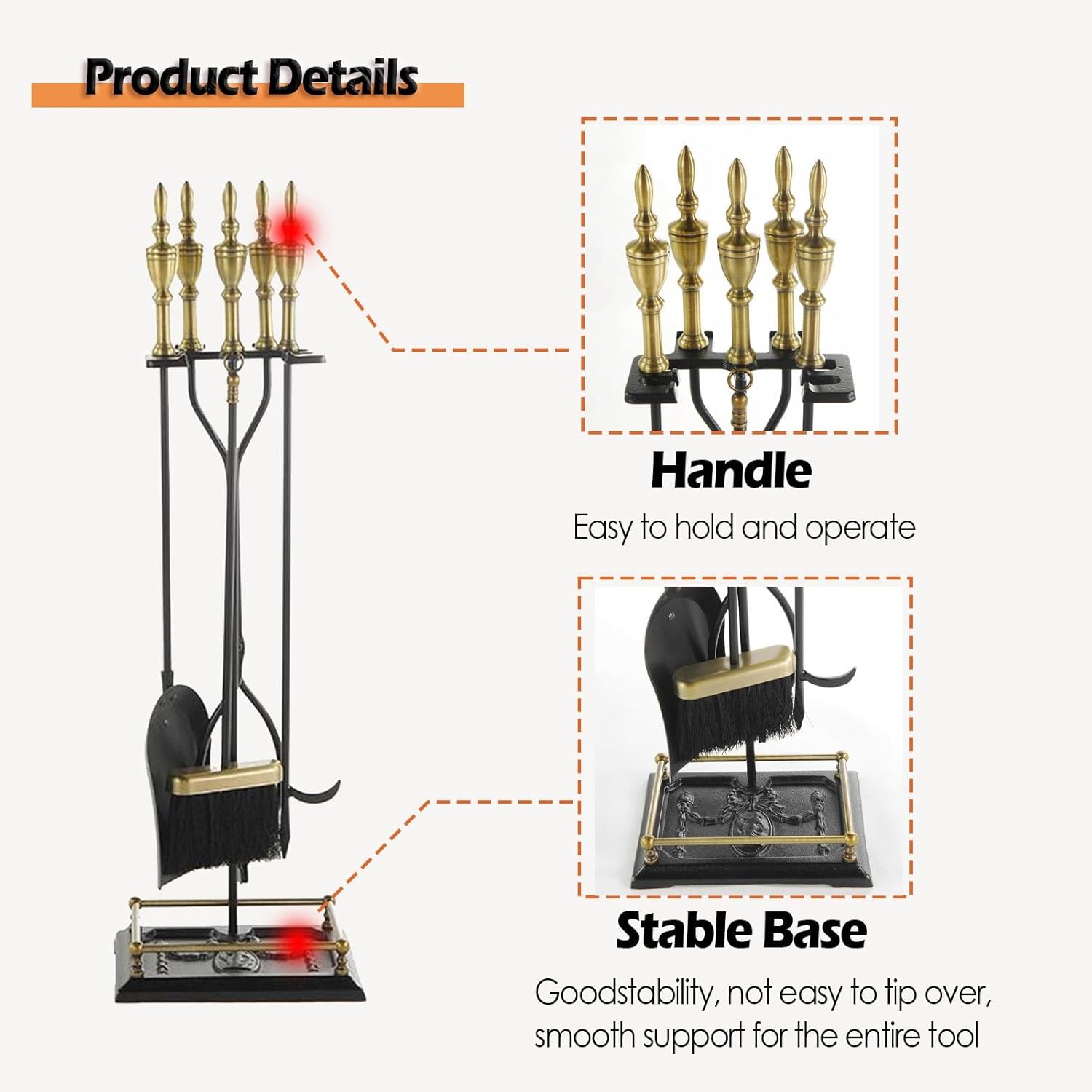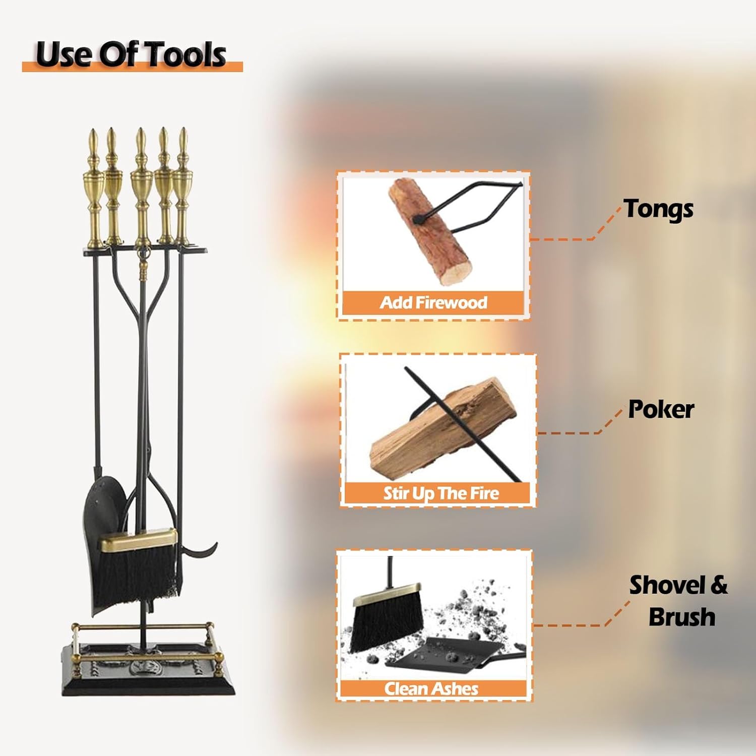 Specification:- Item Name: Fireplace tools set- Material Used: Powder coated iron frame- Colour: Black- Size: 25x81cm/9.8x31.9inPackage Included: Fireplace tools rack ×1brush × 1shovel × 1tong × 1poker × 1 Features --Stylish contemporary design--easy to set up--Large capacity --indoor or outdoor useNOTE: 1. Clean with mild soap and water while the screen is cooled. 2. Due to manual measurement, there may be a difference of 1-2cm.3. The reason computer resolution, there may be differences in color to the actual goods received prevail