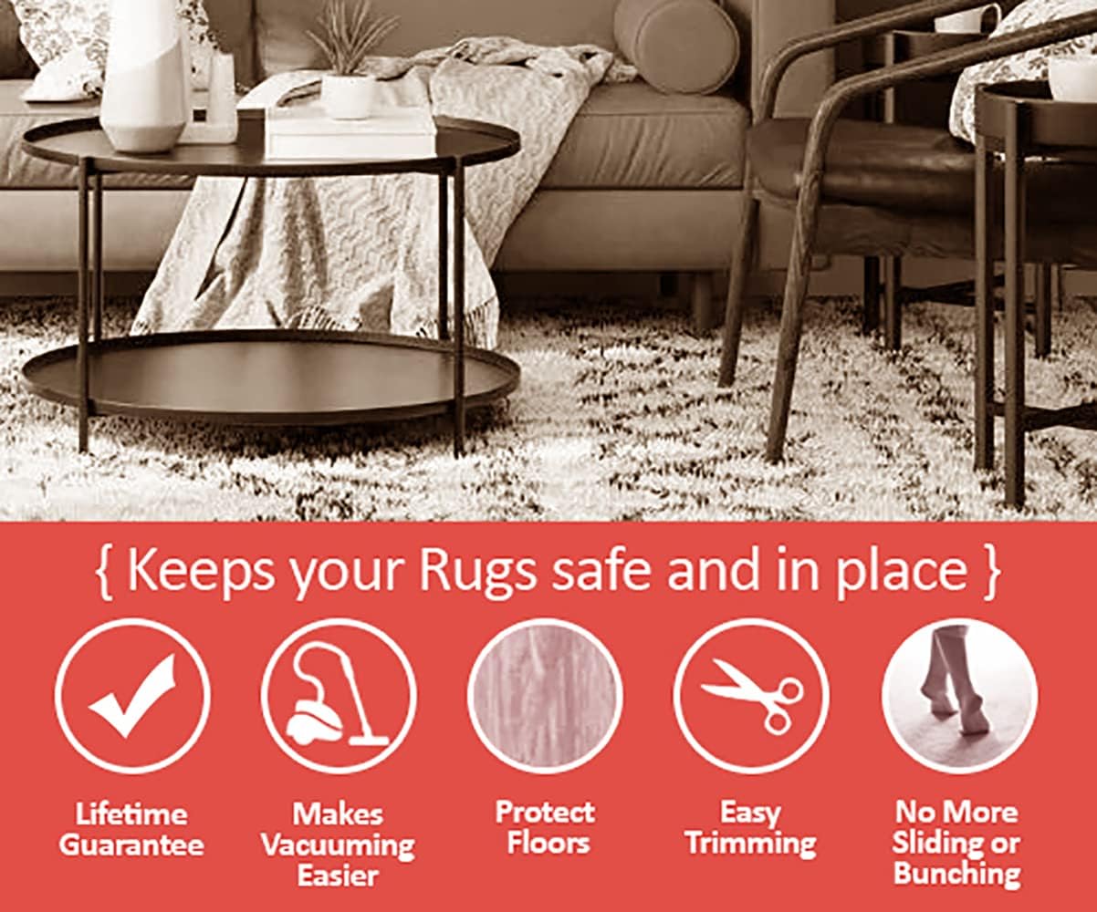 This rug pad provides many benefits for your rug pad. Some of the benefits are that this rug pad prevents slipping and therefore improves your overall safety by preventing falls. Rug pads alos prolong the life of your rug pad. Rug pads protect your floors from scuff and scratches. Additionally, this rug pad will not leave residu behind unlike other rug pads. This rug pad provides additional comfort for your feet as it adds and extra later of cushion. A rug pad also minimizes friction, making vacuuming easier. Lastly, a rug pad provides circulation between your rug and the floor so that bacteria does not build up under the rug.