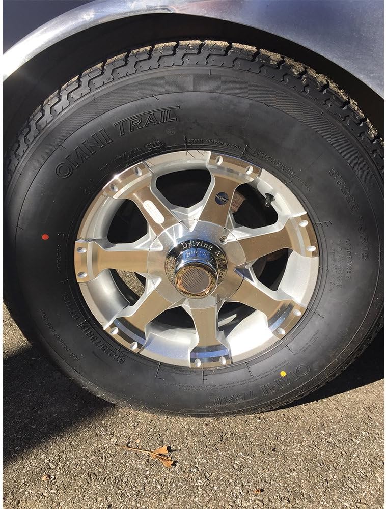 15 Inch 5 Lug Trailer Rim Load Capacity: 1820lbs Center Hole Diameter 3.19" 0 Offset Compatible Tire Sizes: 205/75D15, 205/75R15 Center Cap Included