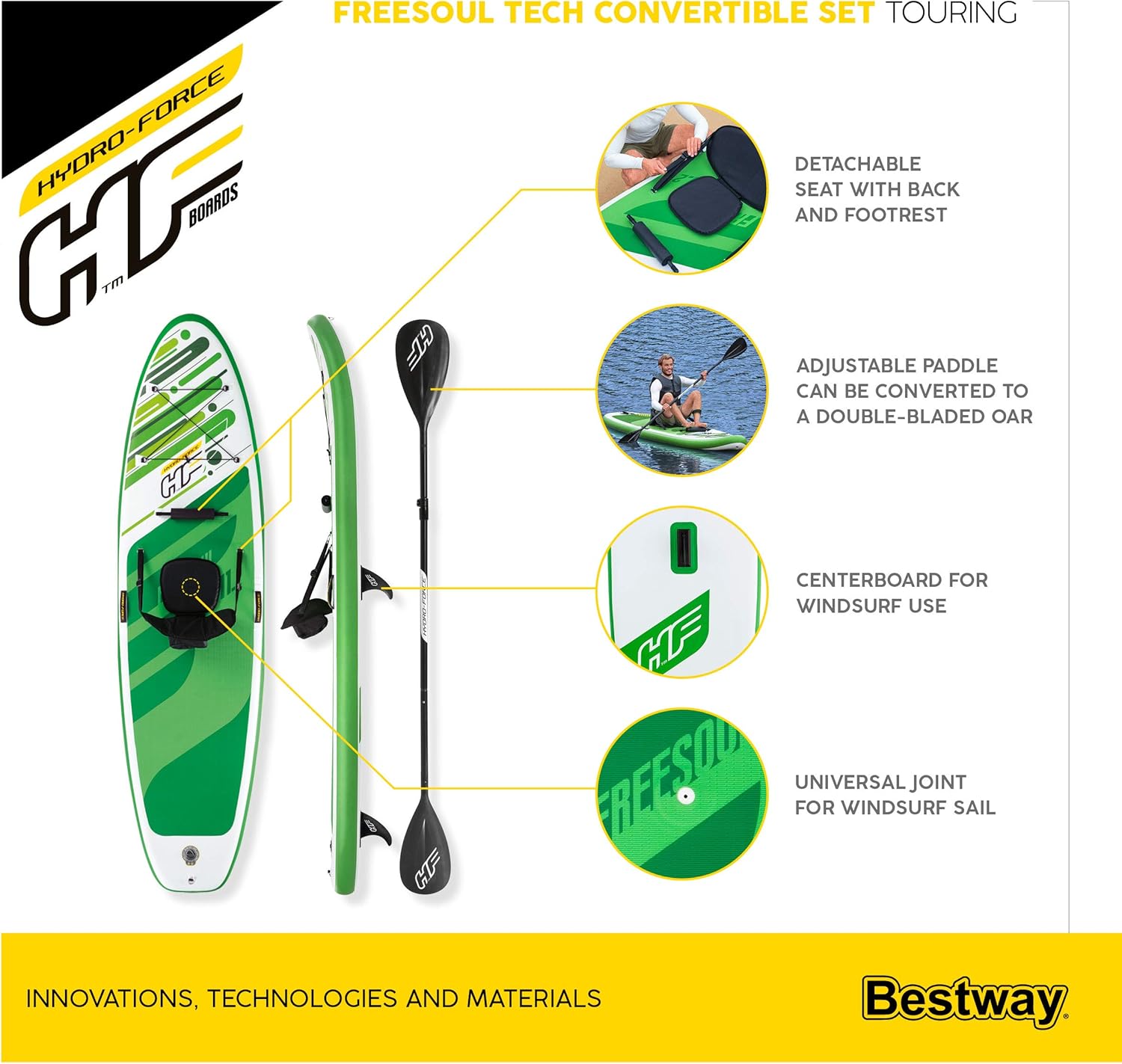 | Included Components | Paddle board, paddle, hand pump, deluxe backpack, coiled leash, seat, footrest, centre fins, repair kit. |