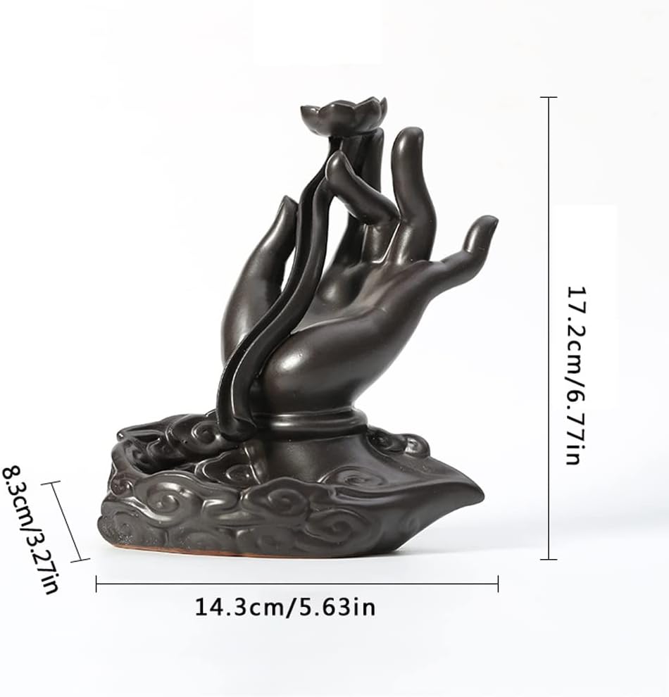 Product Name: Backflow/Waterfall Incense BurnerMaterial : CeramicSizes(L×W×H): 5.63''×3.2''×6.77'' Application scope : Living room, bedroom, study room, bathroom, office, coffee room, office, yoga room, meditation room, hotel, it is helpful for meditation and relaxation.Package Included: 1 × Incense HolderPrompts:1. Please note that due to the influence of light and screen, slight chromatic aberration is acceptable. Thank you!2. Please confirm the size and color before buying.3. Product photos do not include products other than shoe rack.4. Please allow 2-3% difference according to manual measurement, please refer to the actual product, thank you!This incense burner can easily create a relaxing, serene and pleasant atmosphere. Ideal aromatherapy accessory for home, bedroom, study, kitchen, office, yoga room, meditation room and zen room.