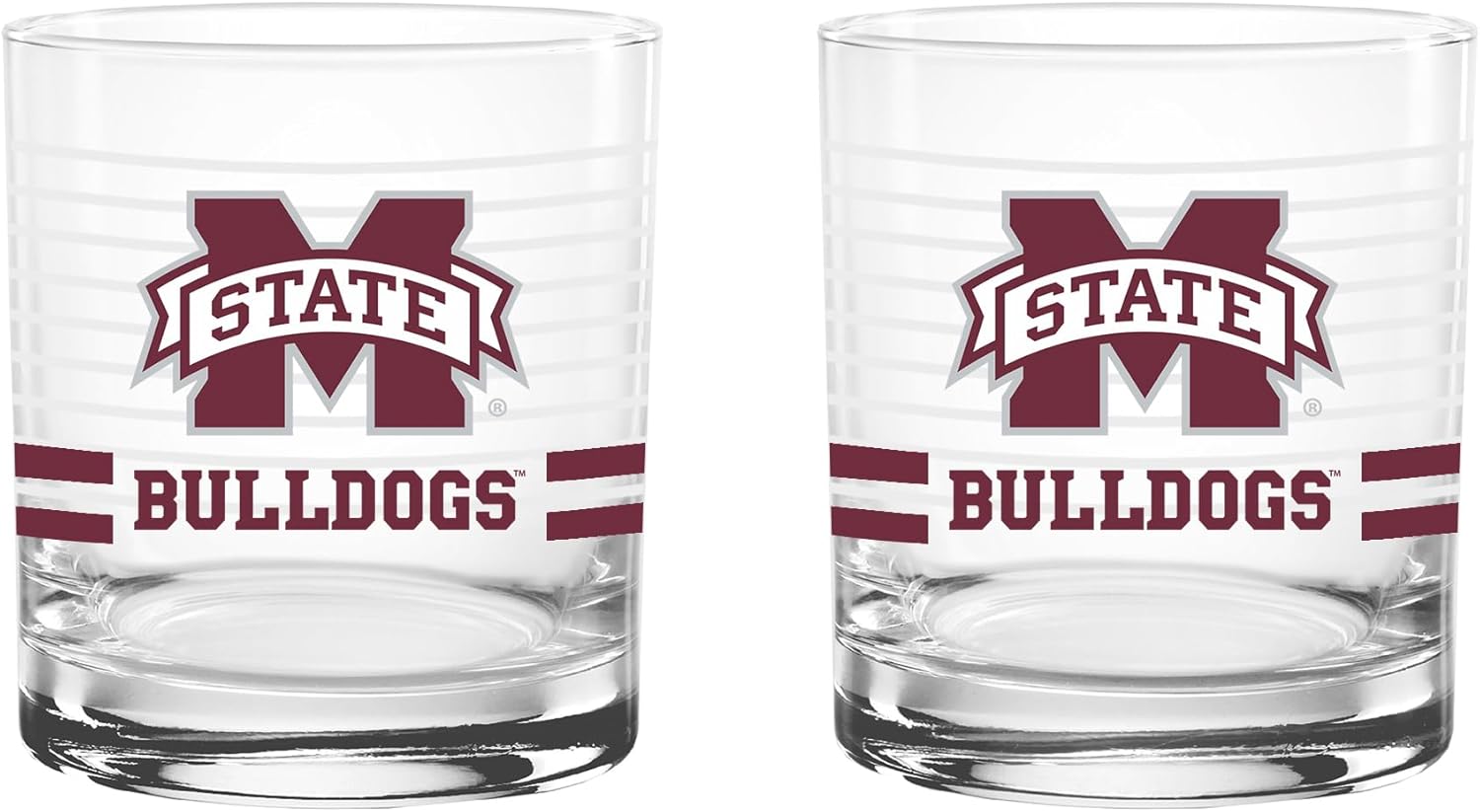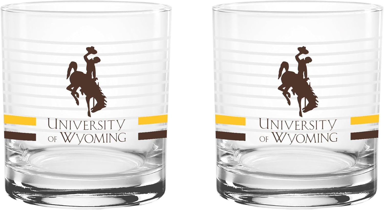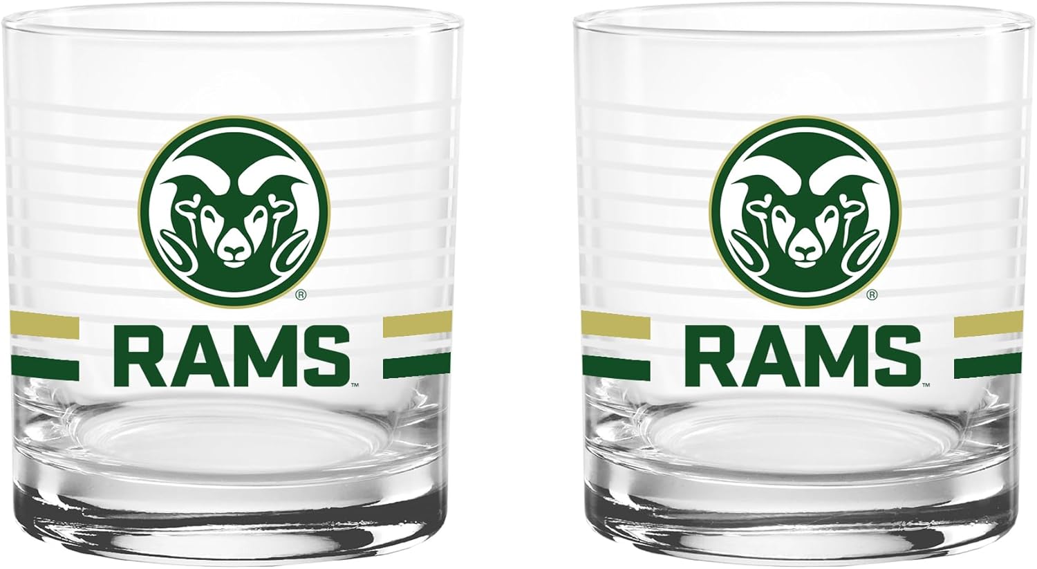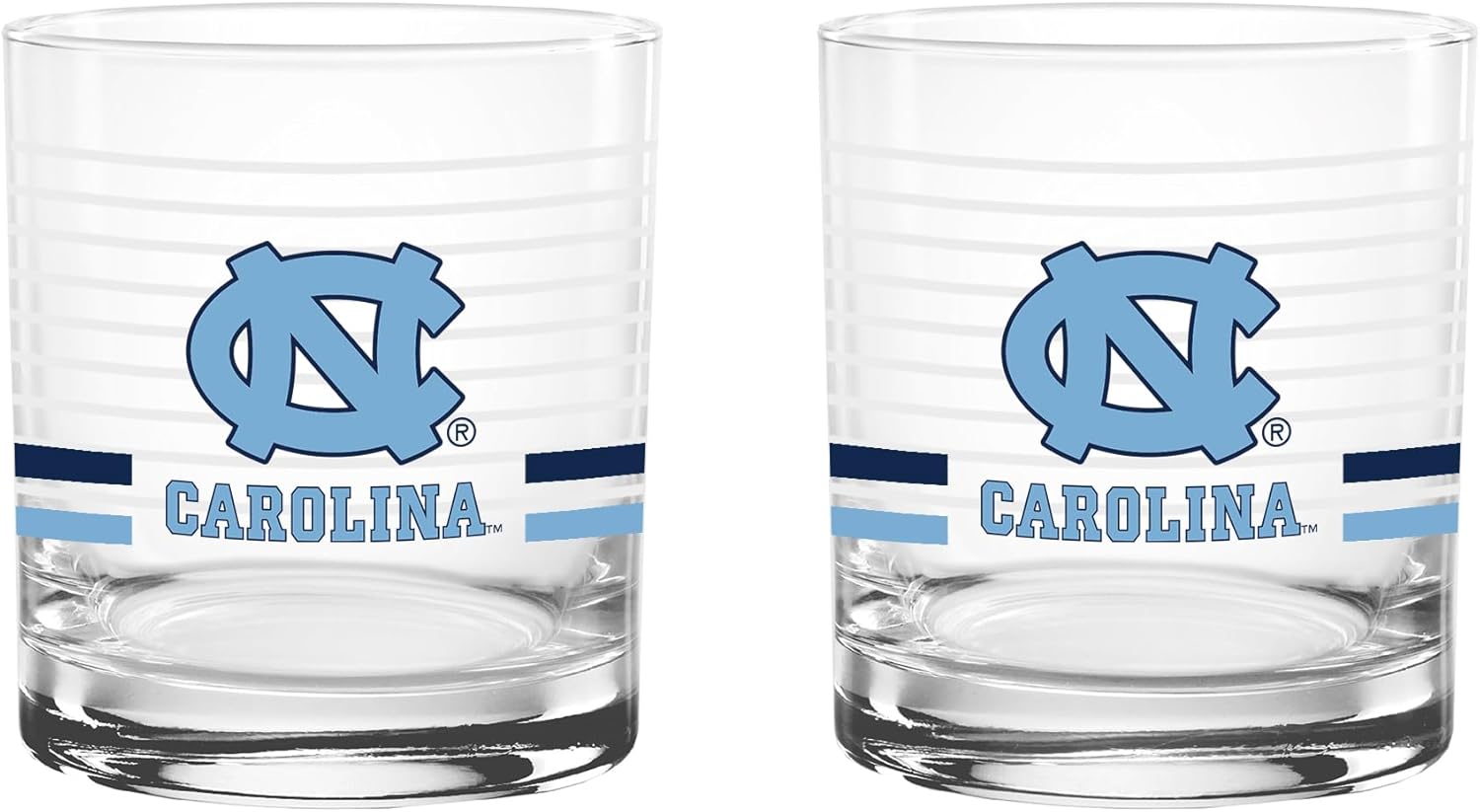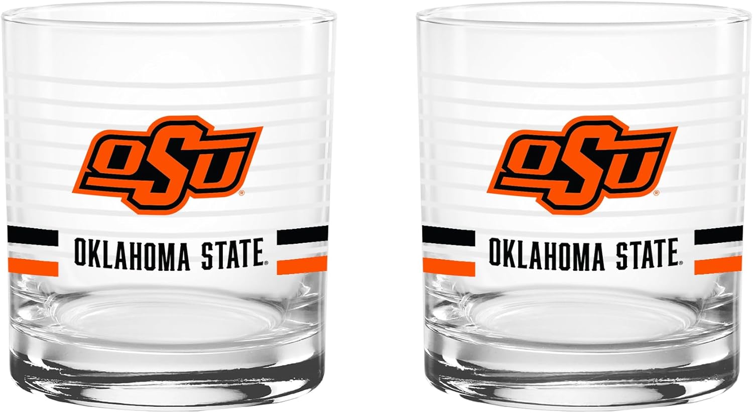 This officially licensed collegiate 14 oz rocks glass set combines classic barware style with bold school spirit. Made in the USA from high-quality glass, each glass features a ring line design, a vibrant team-colored logo, and coordinating team color stripes that proudly represent your favorite school. The 14 oz rocks glass silhouette offers a sturdy base and comfortable feel, making it perfect for serving whiskey, cocktails, soda, or any favorite beverage. Its timeless design adds a stylish touch to any home bar while showing off your team pride. Ideal for game days, tailgates, alumni gatherings, or everyday use, this two-pack set makes a great addition to any fan collection and a perfect gift for students, alumni, and dedicated supporters.