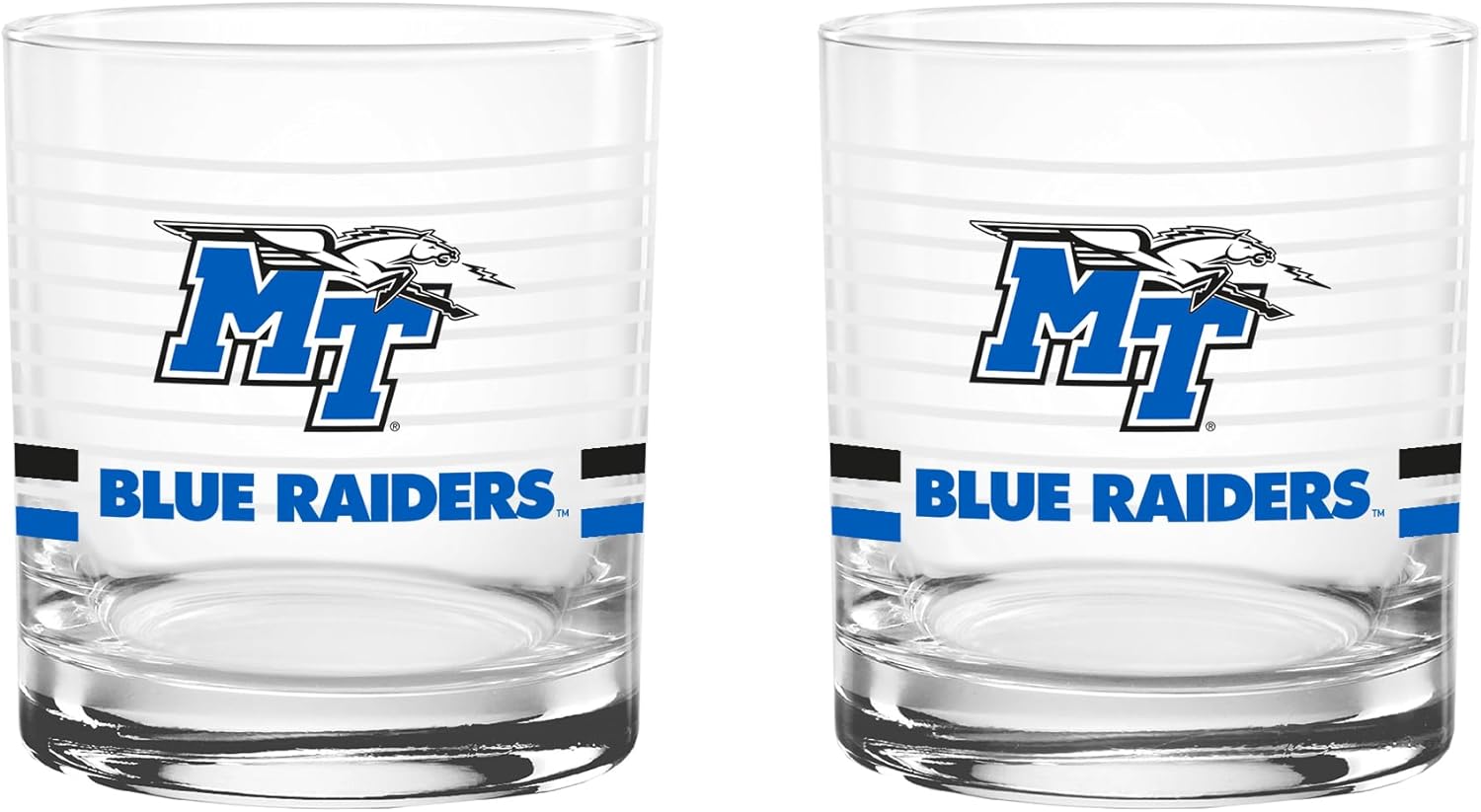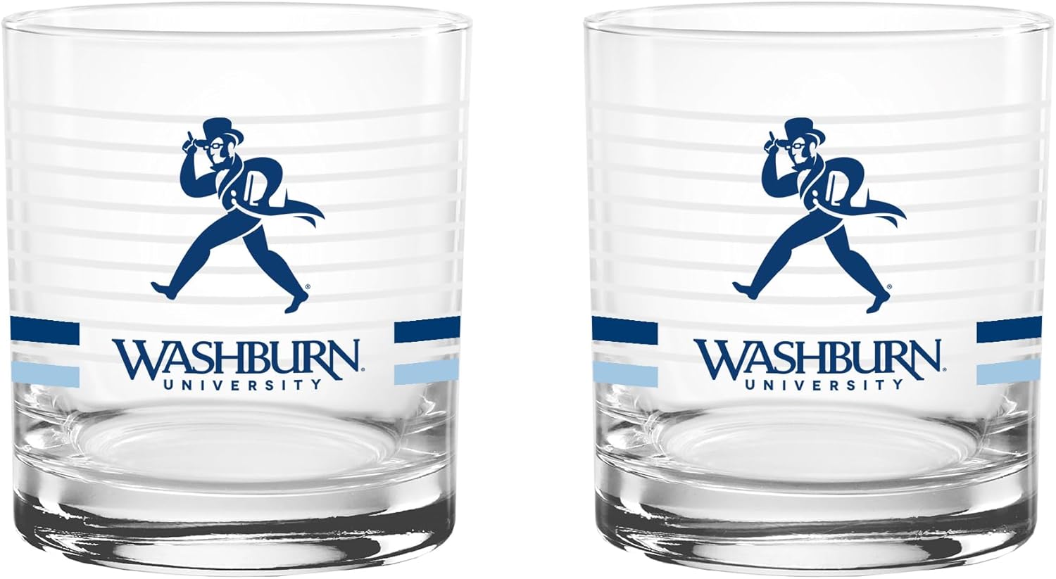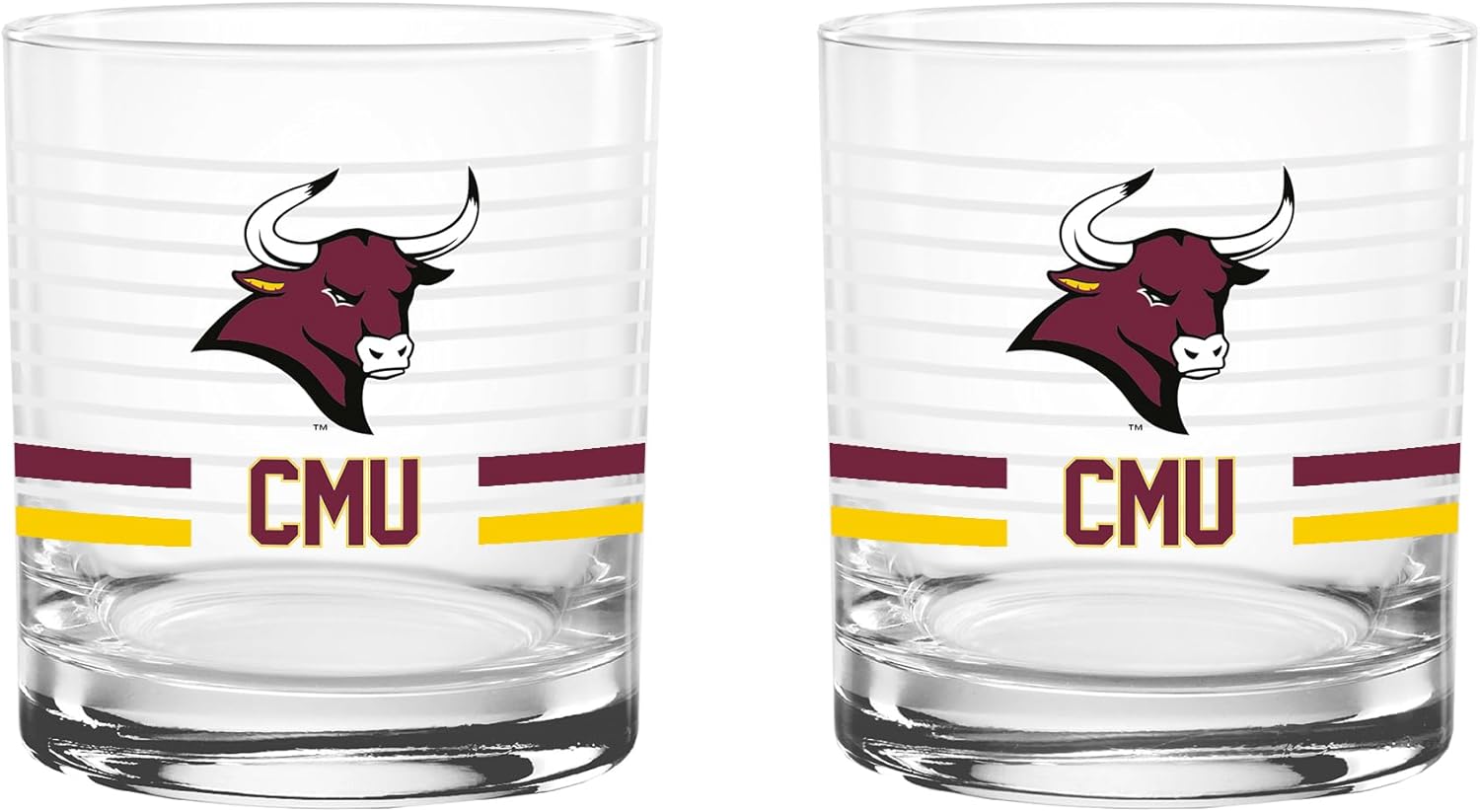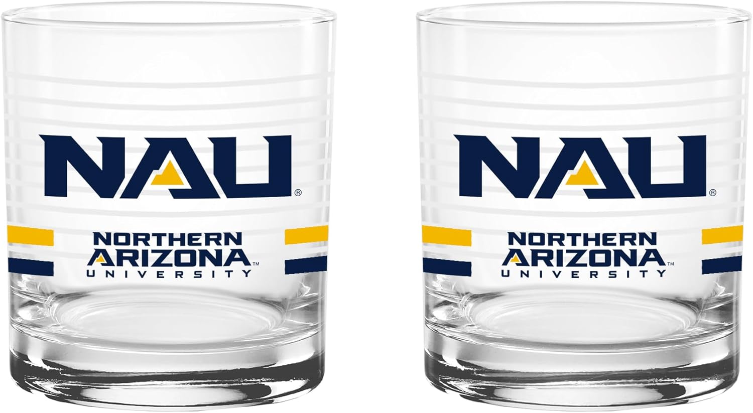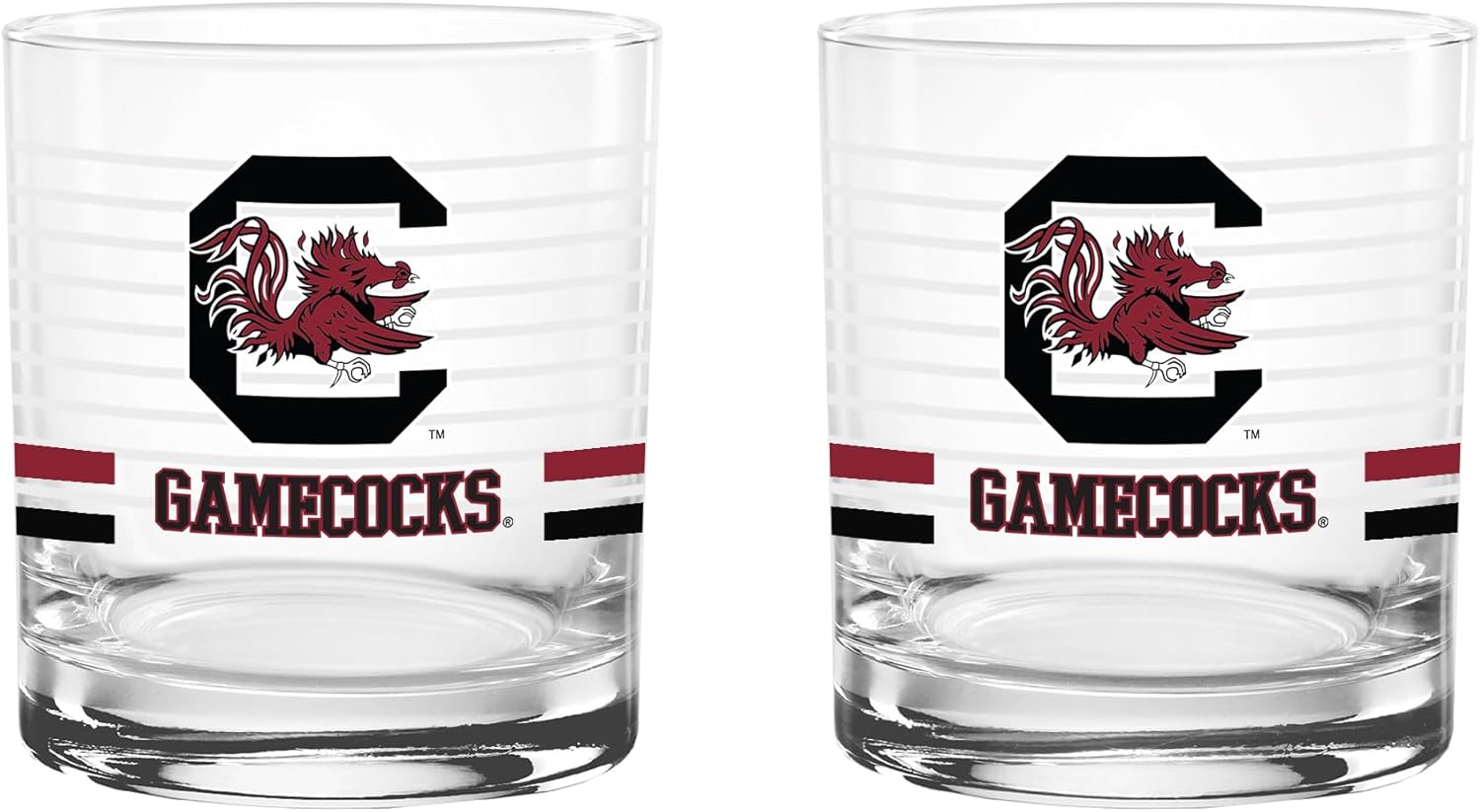This officially licensed collegiate 14 oz rocks glass set combines classic barware style with bold school spirit. Made in the USA from high-quality glass, each glass features a ring line design, a vibrant team-colored logo, and coordinating team color stripes that proudly represent your favorite school. The 14 oz rocks glass silhouette offers a sturdy base and comfortable feel, making it perfect for serving whiskey, cocktails, soda, or any favorite beverage. Its timeless design adds a stylish touch to any home bar while showing off your team pride. Ideal for game days, tailgates, alumni gatherings, or everyday use, this two-pack set makes a great addition to any fan collection and a perfect gift for students, alumni, and dedicated supporters.