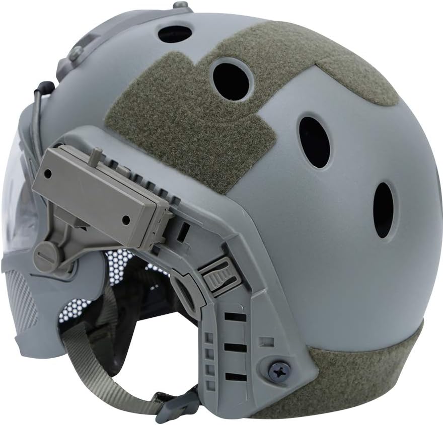 Weight: 900 grams, light and easy to carry, can be used for a long time. Provides head and face protection against incoming bb It is fully adjustable from the size of the headband to the height of the helmet, and is equipped with a rear dial design to adjust the tightness Soft padded interior, comfortable to wear, can effectively prevent bumps and impacts Near the helmet frame, there are a large number of ventilation holes, which can form a large amount of air circulation during the user's exercise, so as to achieve the effect of heat dissipation and improve the comfort of the user. Tactical helmet + breathable mask + anti-fog goggles Helmet-ABS engineering plastic Mask-Thermoplastic Polyurethane (TPU) Lens-Polycarbonate Plastic (PC)