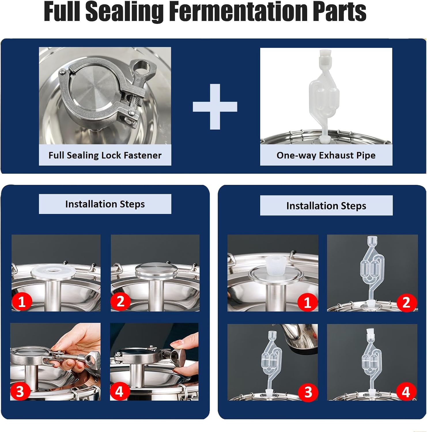 Parameters: Capacity: 125L/33 Gal Material: #304 stainless steel Size (DxH): 25.6x40.55in (650x1030mm) Opening size: 16.54in/420mm Net weight: 26.3lb (12kg) Shipping size: 21.06x21.06x33.66+27.36x26.77x8.07in Shipping weight: 60lb+25lb Item Included: One set of 125L Stainless Steel Fermenter Brewing Equipment Stainless Steel Fermenter Milk Can