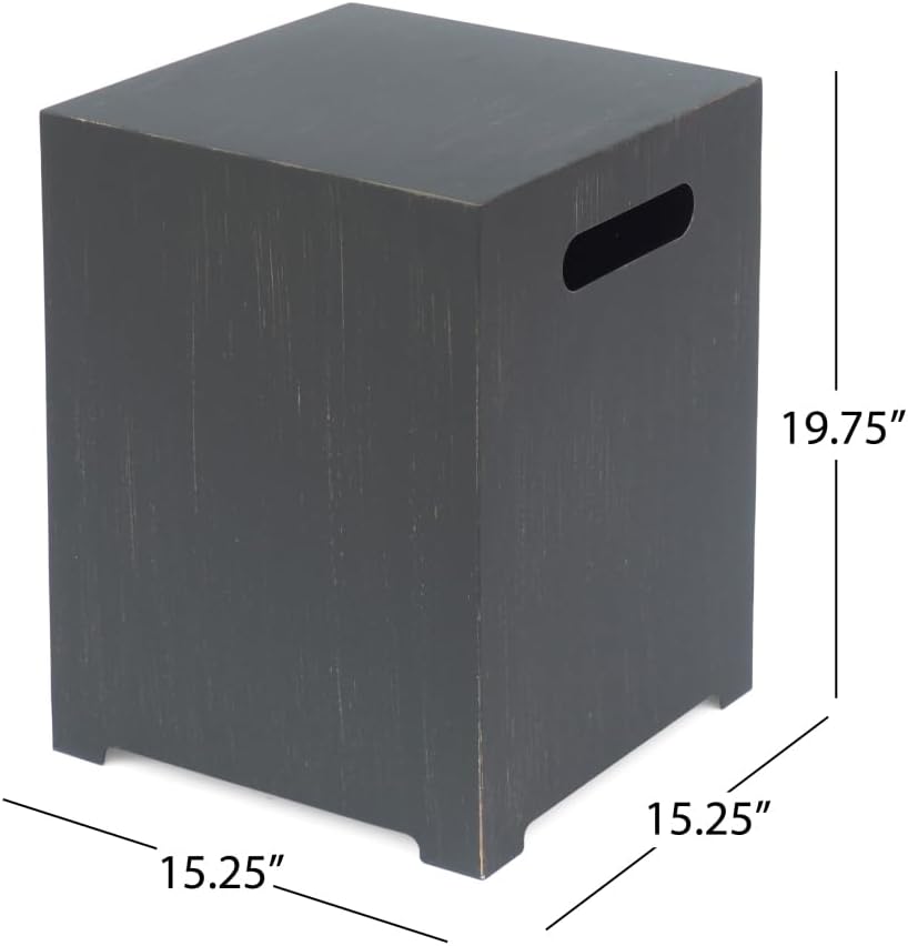 Transform your outdoor living space with our elegantly designed iron propane tank cover enclosure. This multifunctional piece expertly conceals standard 20lb propane tanks while providing a stable, stylish side table surface for your patio or deck. Crafted from durable powder-coated iron, this enclosure offers exceptional weather resistance and longevity. The dark finish complements various outdoor decor styles from modern to traditional, seamlessly blending with your existing furniture. Measuring 19.75 inches in height with a 15.25-inch square tabletop, this enclosure provides ample space for drinks, plants, or grilling accessories. The open shelf design allows for convenient storage while maintaining proper ventilation around your propane tank. Installation requires no tools or assembly – simply place the enclosure over your propane tank and enjoy immediate use. The sturdy construction supports significant weight while protecting your tank from weather elements and accidental impacts. Perfect for backyard barbecues, poolside gatherings, or cozy firepit evenings, this practical solution keeps your outdoor area organized and aesthetically pleasing throughout all seasons.
