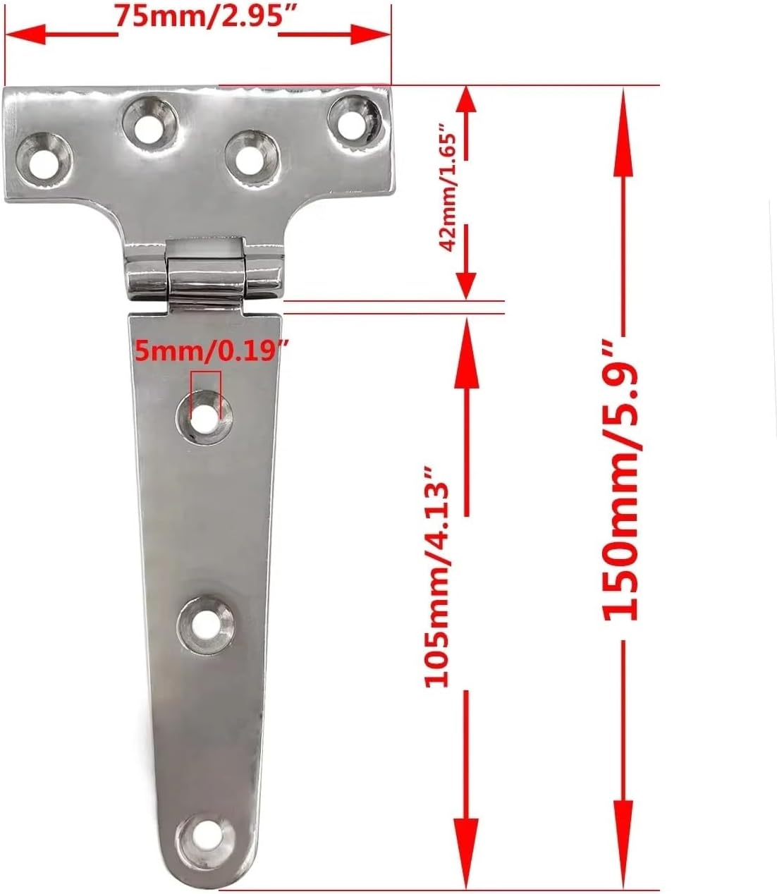 HardwareISURE Stainless Steel T Hinges Grade Heavy Duty Boat Hatch Hinge (150 mm X 75 mm) Casting Cabinet Hardware Door Hinge