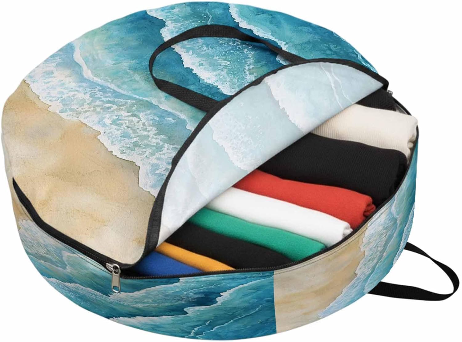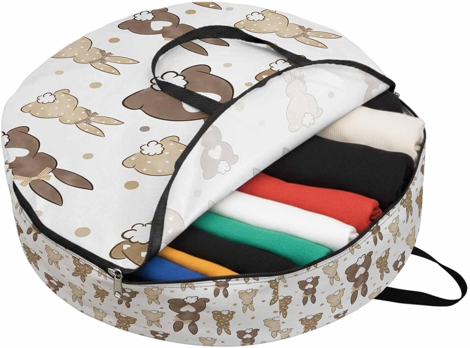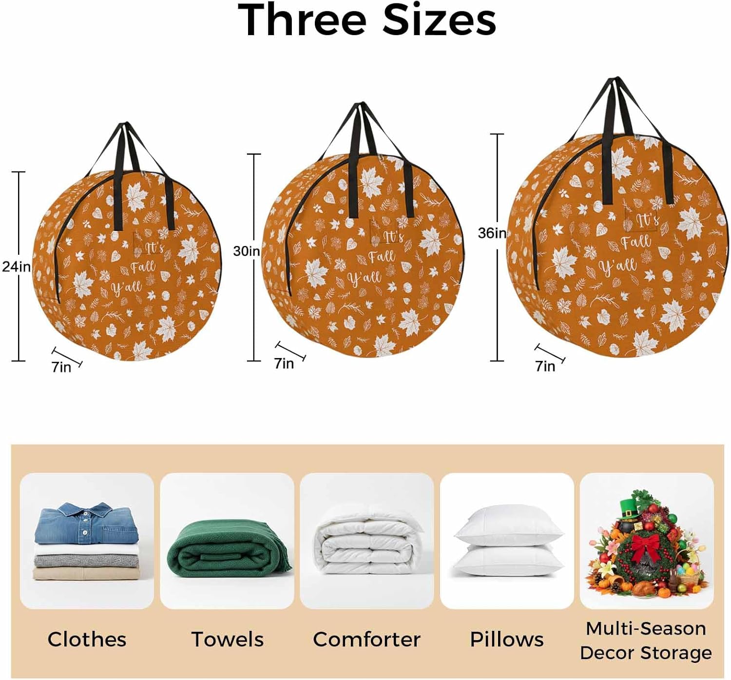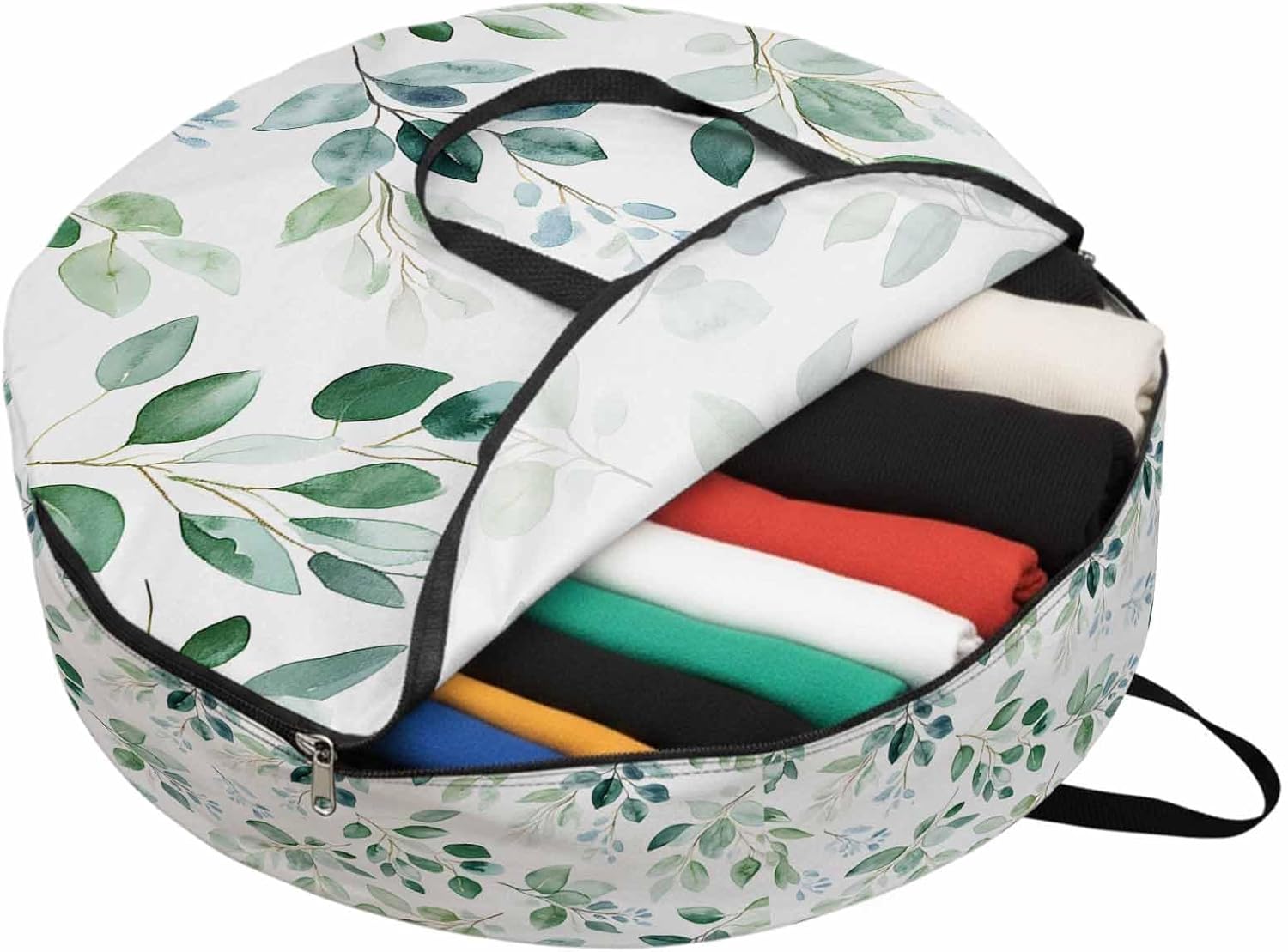 Reclaim Your Closet Space with the Round Storage Solution! Material: polyester Diameters: 24 inch, 30 inch, 36 inch Depth: 7 inches Package Includes: Round Storage Bag One Bag, Endless Possibilities: Whether you are swapping out your summer wardrobe, moving into a new dorm, or packing away holiday decorations, this bag has you covered. The circular design is uniquely suited for: Bedding: Comforters, quilts, sheet sets, and oversized pillows. Clothing: Winter coats, sweaters, and bulky ski gear. Home Decor: Holiday wreaths, garlands, and floral arrangements. Outdoor Gear: Camping blankets, sleeping bags, and beach towels. Dual Zippers: The high quality double zipper design allows the closet organizer to open wide from both sides, making it effortless to load and unload even the bulkiest comforters or wreaths. Reinforced Handles: Sturdy, reinforced handles are securely stitched to provide extra strength and a comfortable grip when carrying heavy loads or pulling the bag from under a bed. Clear Label Pocket: A transparent built-in label holder allows you to quickly identify the contents of each bag without ever having to unzip it, keeping your storage perfectly organized.