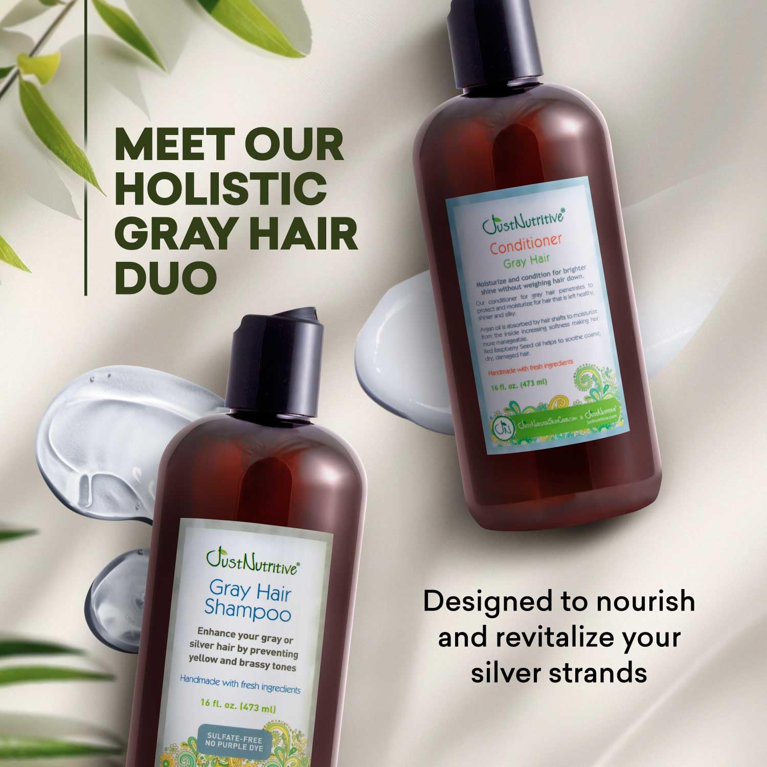 Let our all-natural gray hair shampoo and conditioner soften and brighten those grays! Neutralize all those brassy tones with just the first wash. Our gentle gray hair shampoo and conditioner were created to help remove all that yellowing buildup and residue you may begin to see in your gray, silver, or white locks. Repair, nourish, and protect your grays. Eliminate the yellowing with all-natural oils and extracts.