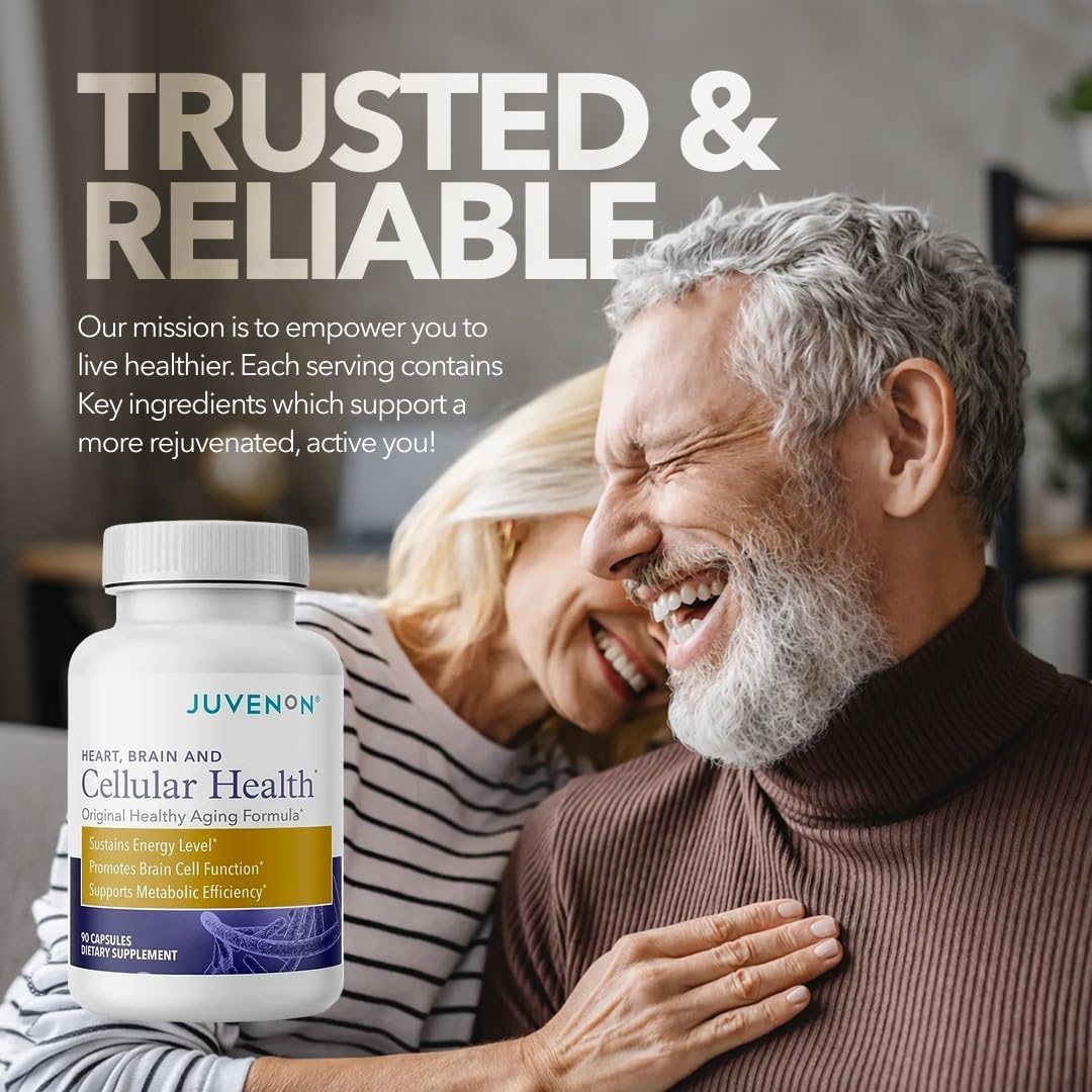 Meet your daily cellular support routine in one bottle. WHAT IS JUVENON CELLULAR HEALTH FOR? It is a daily cellular health supplement for adults who want support for energy, focus, clarity and healthy aging in one simple routine. Each serving brings together three well known nutrients: Acetyl L-Carnitine, Biotin (Vitamin B7) and Alpha Lipoic Acid. WHY THESE THREE INGREDIENTS? - Acetyl L-Carnitine supplement support: helps support cellular energy and mental energy by supporting how the body converts nutrients into usable energy. - Alpha lipoic acid supplement (ALA) support: provides antioxidant support and helps support cellular function for everyday wellness. - Biotin supplement (Vitamin B7) support: helps support energy metabolism and supports a consistent daily wellness routine. COMMON QUESTIONS, ANSWERED: Worried about jitters? This formula is stimulant free, so it is designed for steady support without coffee-like spikes. Not sure if it is easy to take? You get capsule convenience, so it fits morning or evening routines. Looking for long term use? The focus is daily support for cellular energy, metabolism and vitality. HOW TO USE: Take as directed on the label and stay consistent. Pair with a balanced diet, hydration and regular movement for best routine results. WHAT YOU GET: One bottle with 90 capsules designed for daily use. Great for adults building a simple healthy aging routine and anyone searching for l carnitine supplement, ALA supplement or biotin supplement support in a single formula.