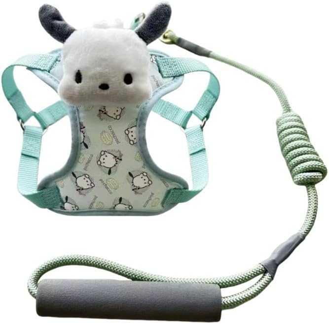 Add a touch of whimsy to your pet's daily walks with this adorable character harness and leash set. Perfect for small pets, each harness features an adorable plush character head and matching patterned fabric body. Available in three charming designs - a yellow puppy, pink bunny, and mint green cow - each with coordinating print patterns. The harness is thoughtfully designed with adjustable straps for a secure, comfortable fit, while the matching leash includes a soft, ergonomic padded handle for owner comfort. The durable nylon construction ensures lasting wear, and the plush character detail adds personality to every walk. The coordinated color scheme extends from the harness to the braided leash, creating a stylish and cohesive look. This cute and functional set combines practical features with playful design elements that both pets and owners will love. The harness's H-style design helps distribute pressure evenly across your pet's chest for comfortable wear during walks and outings.