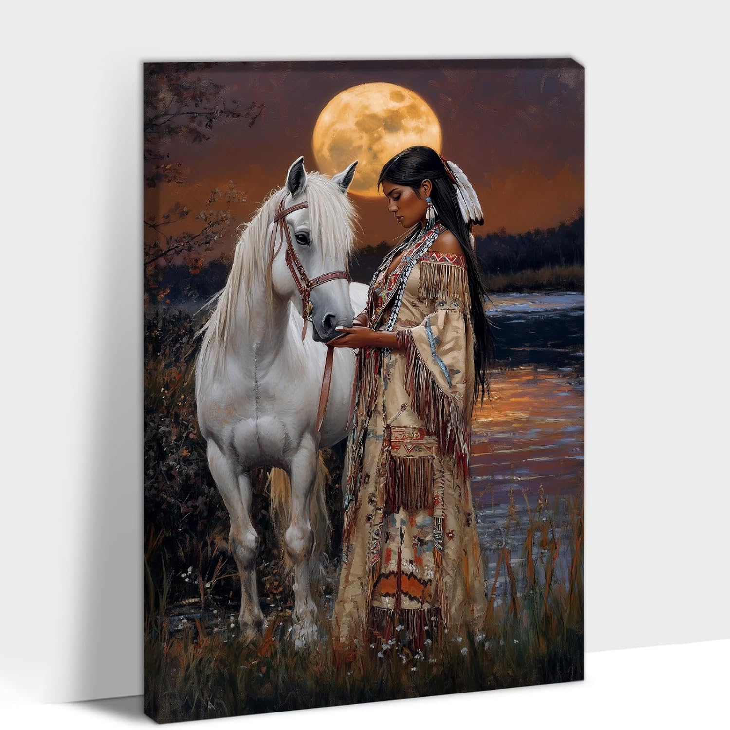 Dynamic Wall Decor for Modern SpacesThis KISTIKAT canvas wall art combines heritage and artistry in a striking Native American themed painting. Ideal for those who appreciate cultural expression and bold visual statements, it serves as a focal point for living rooms, bedrooms, offices, and more.Vivid Imagery & Gallery-Quality PrintsThe wall art decor features a compelling Native American warrior, detailed feather headdress, wolf companion, and tipi, set against an expressive forest backdrop. Printed in HD on premium canvas, the poster boasts clarity, vibrant colors, and a museum-grade finish. The canvas wrapped framed design comes ready to hang on solid wooden frames, with hook pre-installed for easy placement.Premium Construction for LongevityThis canvas art employs fade-resistant, waterproof technology, utilizing environmentally responsible inks for a lasting impression. Available in a range of sizes from 8×12 to 36×48 inches, the picture prints cater to various decorative needs and spatial requirements.Gift-Worthy and Collectible ValueThe painting doubles as a thoughtful gift for birthdays, anniversaries, Thanksgiving, Christmas, and other occasions, symbolizing both personal taste and cultural appreciation. Suitable for home or office, its design enriches any space with its narrative strength and visual depth.Purchase Assurance & ServiceYour satisfaction is prioritized; for any inquiries regarding your canvas wall art, our dedicated support team is available via email. Choose KISTIKAT for a blend of modern decor and artistic heritage.