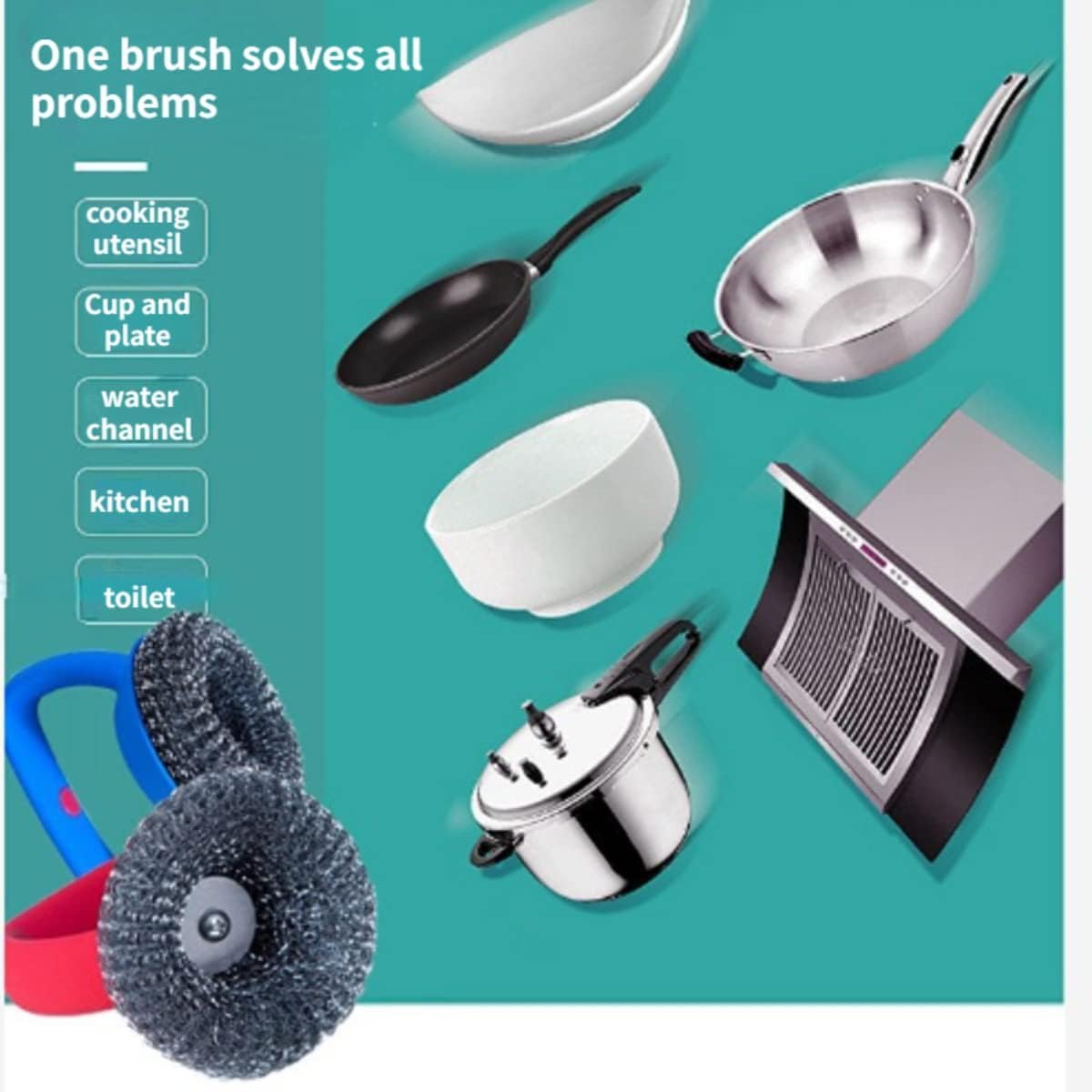 REACHES DEEP: Equipped with silicone handle and stainless steel brush head, there are 5 replaceable steel balls that can continue to be used after the steel ball is worn outCLEANS TOUGH MESSES: This dish cleaning brush cleans grease, grime, and dirt so even the messiest of surfaces will shine like newPROTECTS COOKWARE: A staple of kitchen cleaning, this scrub brush for dishes does not take the protective coatings off cookware to ensure long-lasting useDue to differences in lighting, monitors and personal colors, there may be color differences between the actual object and the photo, please refer to the actual objectThe metal stainless steel scrub brush is designed for tough cleaning tasks in the kitchen. With its durable handle, it offers a firm grip for scrubbing dishes, pots, pans, and sinks. The stainless steel bristles are tough enough to remove grease, grime, and stubborn stains while remaining gentle on your cookware. Perfect for deep cleaning, this dish brush tackles everything from baked-on food to everyday messes, ensuring your kitchen remains spotless. Whether you're cleaning pans, dishes, or sinks, this high-quality scrub brush will make cleaning effortless and efficient. Ideal for those who need a reliable, long-lasting brush for all their cleaning needs.