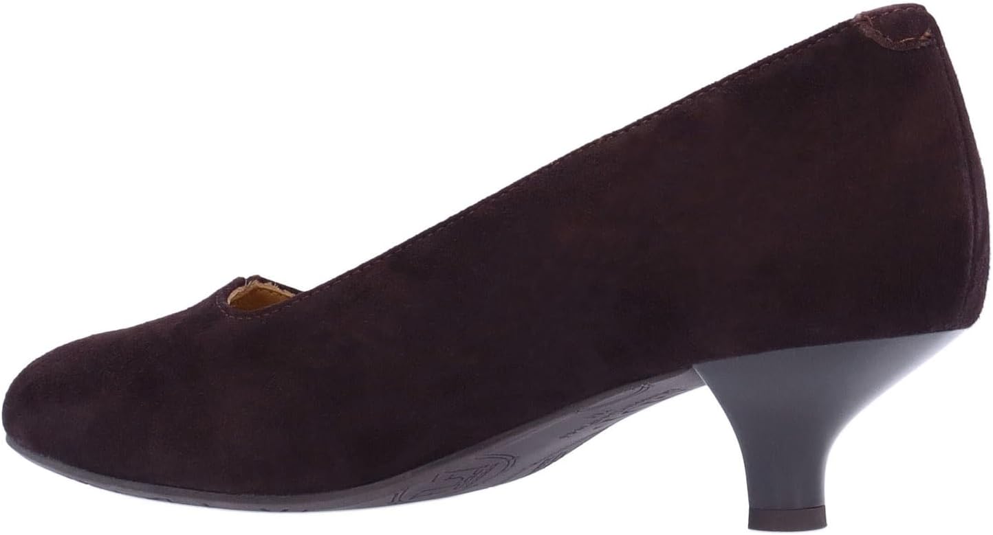 This fall/winter women's leather almond toe pump has a memory foam insole and leather lining and comes in sizes M 5.5-10 11. This slip on shoe is on a 1.5 inch heel.