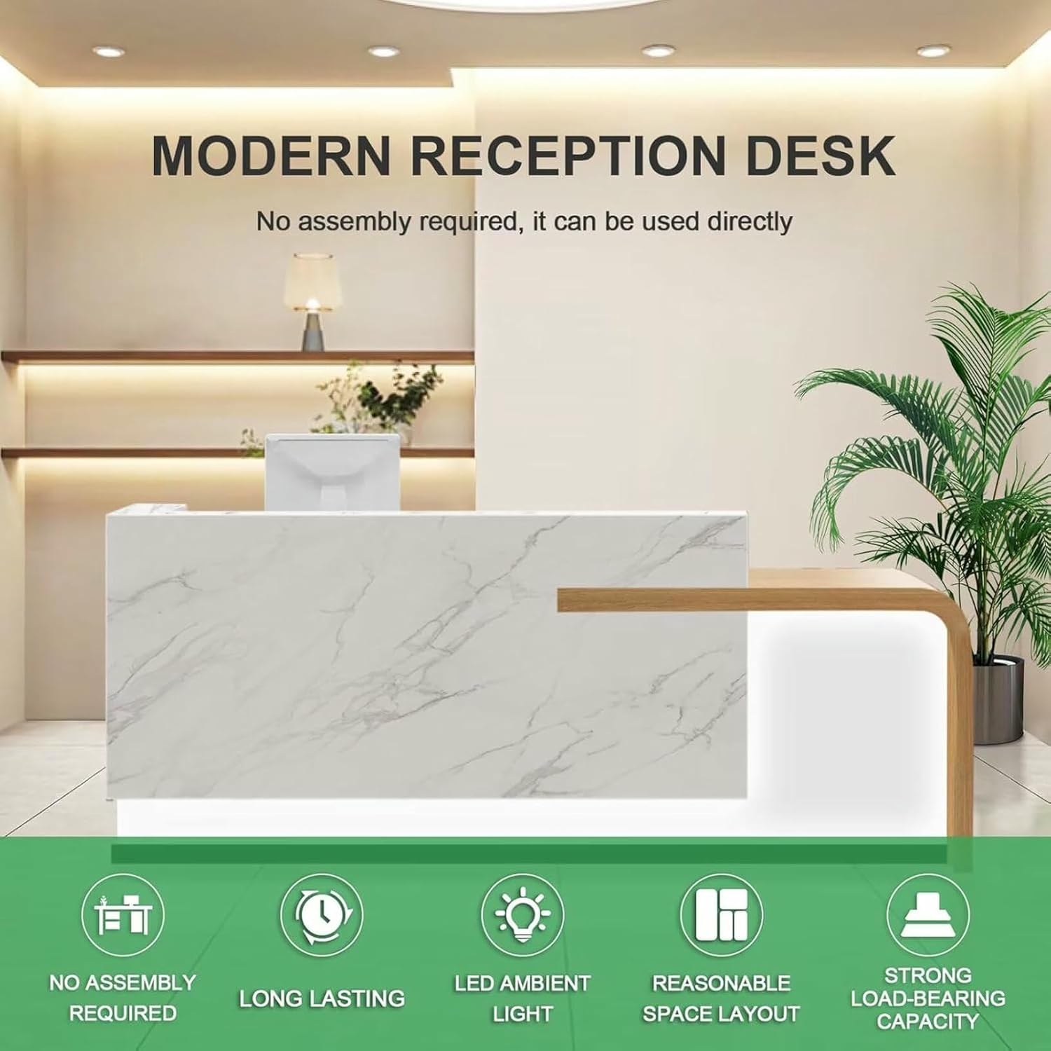 The reception desk with counter check out counter desk offers ample storage space, featuring lockable drawers, cabinets, keyboard trays, cable grommet and double-layered countertops to keep your items neatly organized.