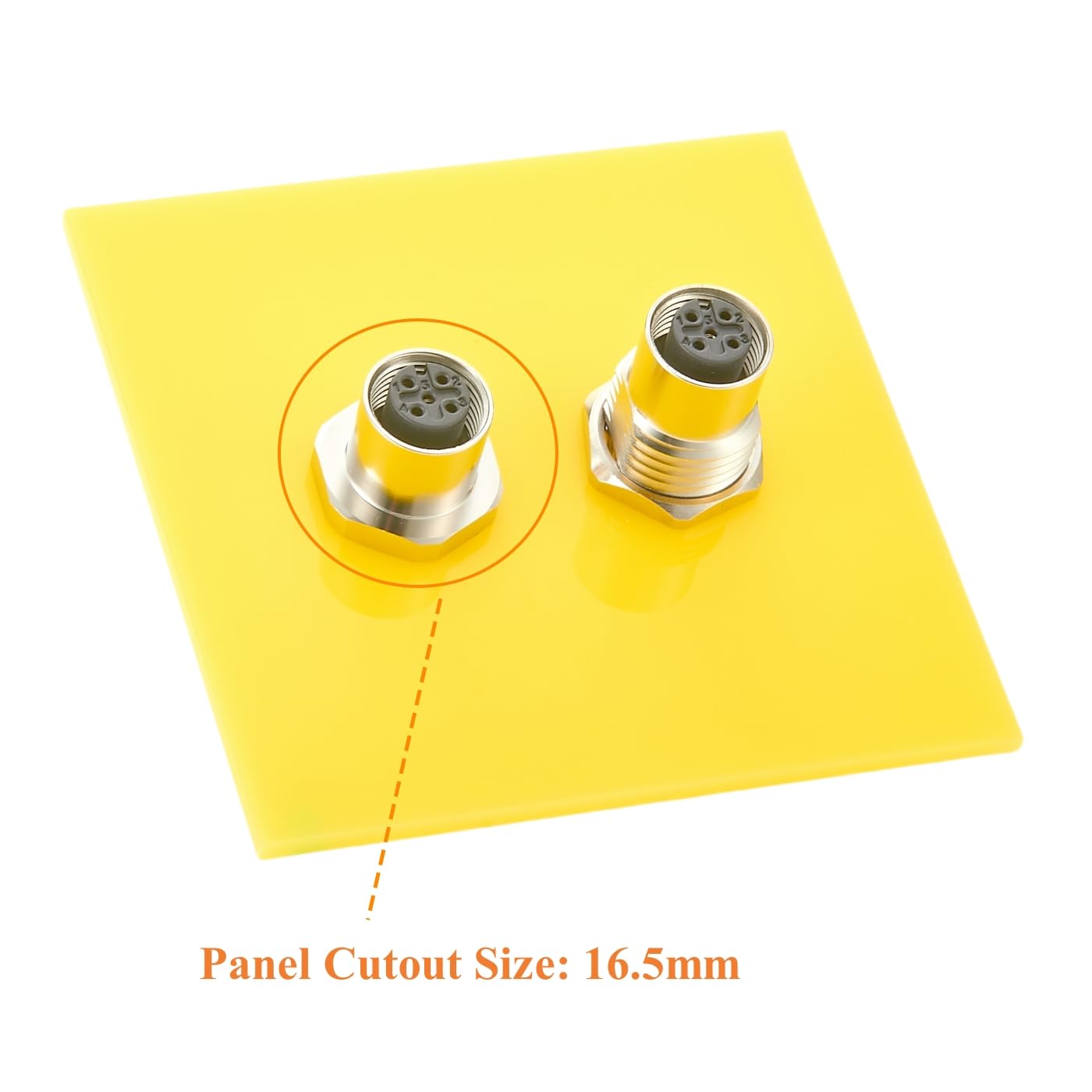Specification:Connector A: M12 A-Coded 5Pin FemaleConnector B: M12 A-Coded 5Pin Female Panel Mount: Bulkhead Panel MountProtection Class: IP67Panel Cutout Size: 16.5mmSealing: O-ringContact: Cooper, Gold-platedTemperature range: -40℃~+80℃Plug-in cycle: ≥100Rated voltage: 60V AC/DCRated current: 4AHexagonal nut: M16 X 1.5