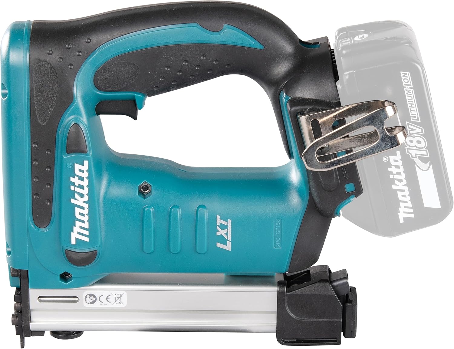Battery stapler 18 V; delivered in a box without battery, without charger, without case; magazine made of aluminium with viewing window for checking the staple stock; suitable for single or series release; vibration-decoupled battery holder; variable impact depth adjustable via smooth-running knurled screw; powerful stapler for quick and easy insertion of staples; technical data: staple width: 10 mm; Clamp length - 10, 13, 16, 19, 22 mm; clip thickness - 0.6 x 1.2 mm; magazine capacity - max. 98 pieces; battery voltage - 18 V; dimensions (L x W x H) mm - 251 x 91 x 212; weight - (including BL1860B) 2.4 kg