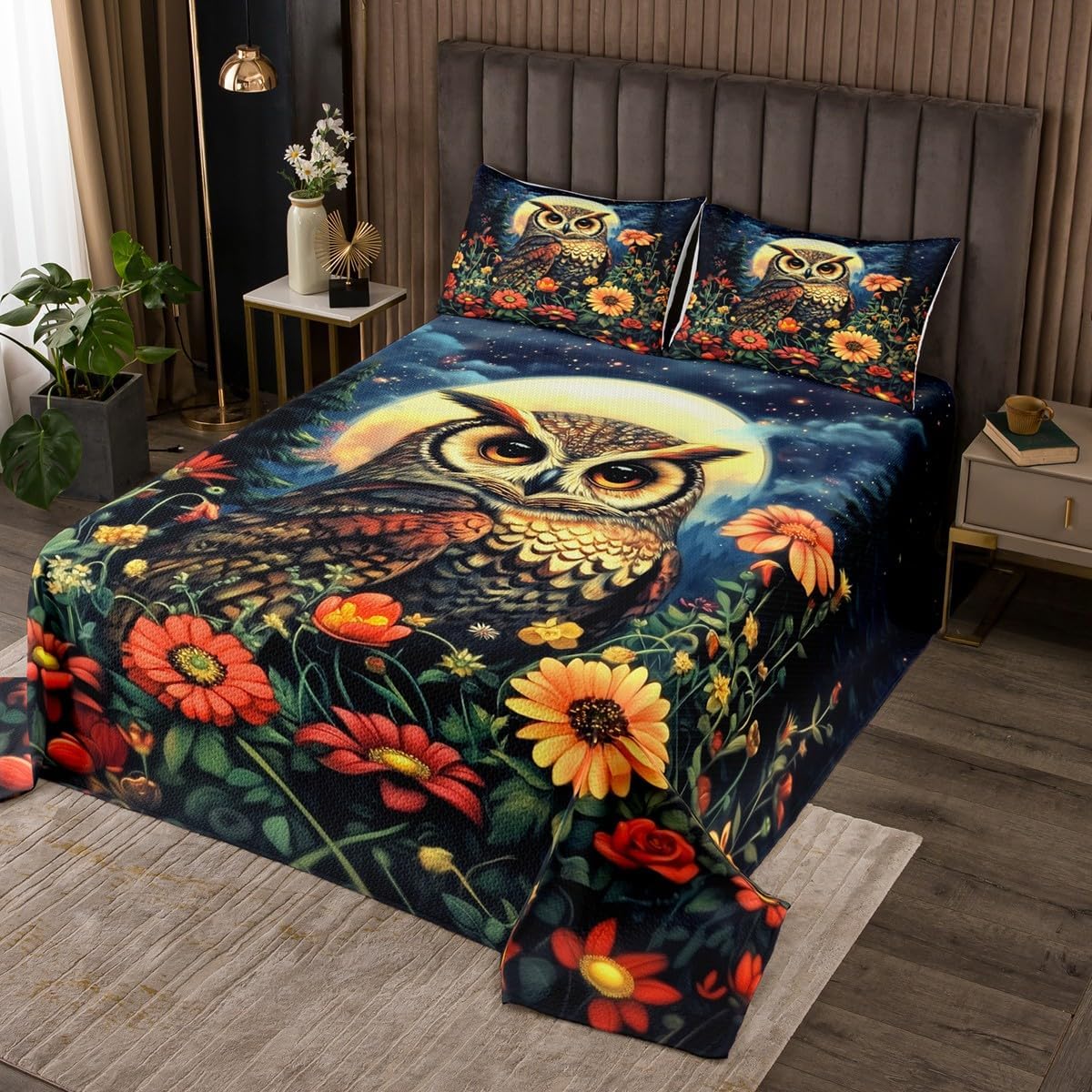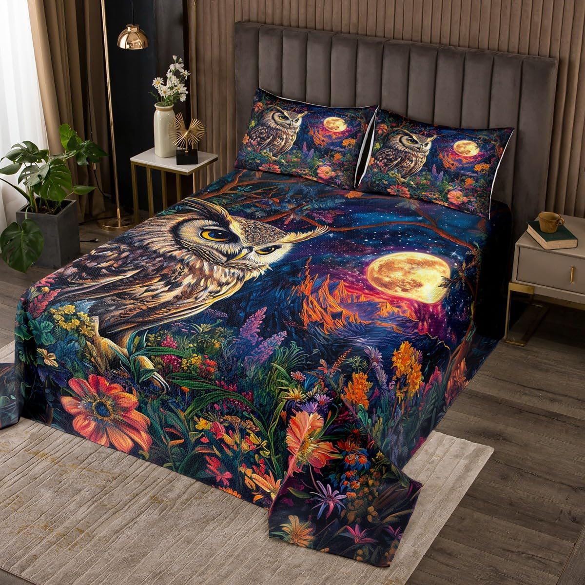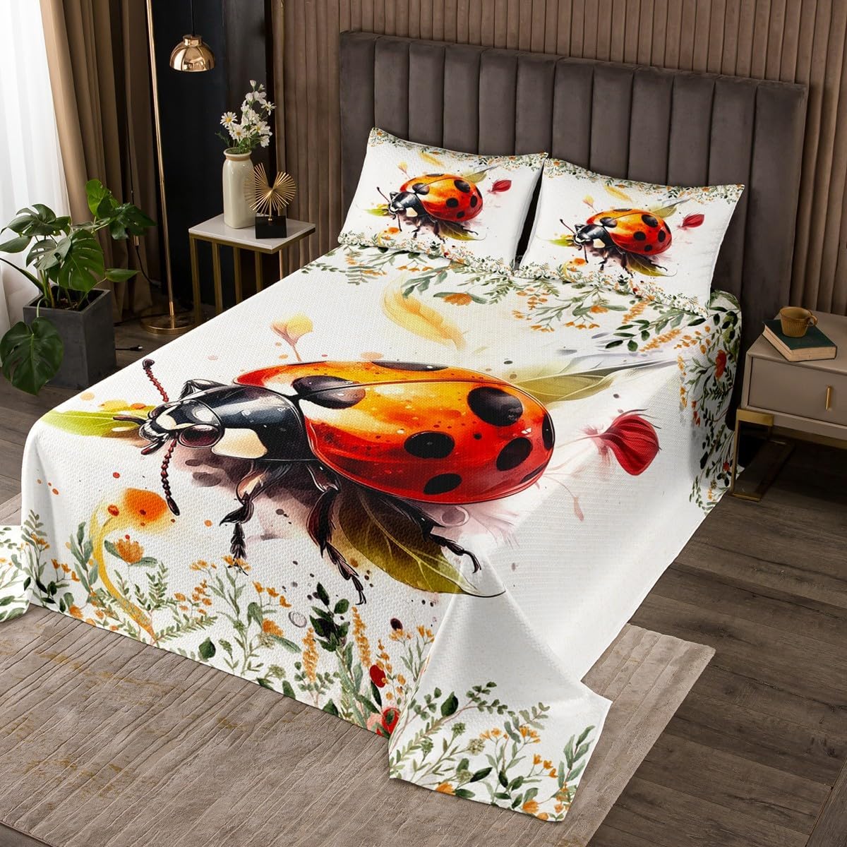 Package Include: Bedspread and Pillowcase. Makeover your bedrooms every season with our bedspread! Perfect item for your room, girls boys youth room, master bedroom. Size Information: Twin size quilted bedspread 68" W x 90" L and 1 quilted pillow sham 30" W x 20" L Queen size quilted bedspread 90" W x 90" L and 2 quilted pillow shams 30" W x 20" L King size quilted bedspread 104" W x 90" L and 2 quilted pillow shams 36" W x 20" L Useful and practical: A luxurious product for homes, dorm rooms, hotels, guest rooms. Practical to use for being polyester, feels like cotton which is Super Soft and Breathable. No chemicals used, No dye substance harming the health of you or your family. Unique design: Vivid Colors won't fade thanks to new 3D digital printing methods. These unique designs match well with various color palettes of your rugs, curtains, headboard, furniture, and all other decor accessories. Personalized: As manufacturers of digital printed home textiles, we follow current trends and bring you the latest home fashion. More Decor: Search "Manfei" to get more christmas theme, new year theme, autumn fall theme, any holiday theme, modern abstract, farmhouse rustic theme, simple pattern, garden flowers etc. home decoration. Note: The Bedspread and Pillow Shams are printed on the Front Side Only, the back of them are white colored. Comforter is Not Include in the set.