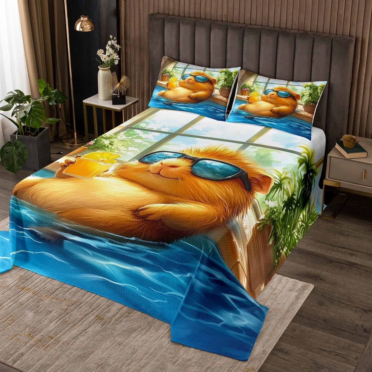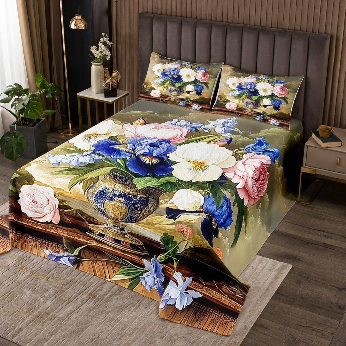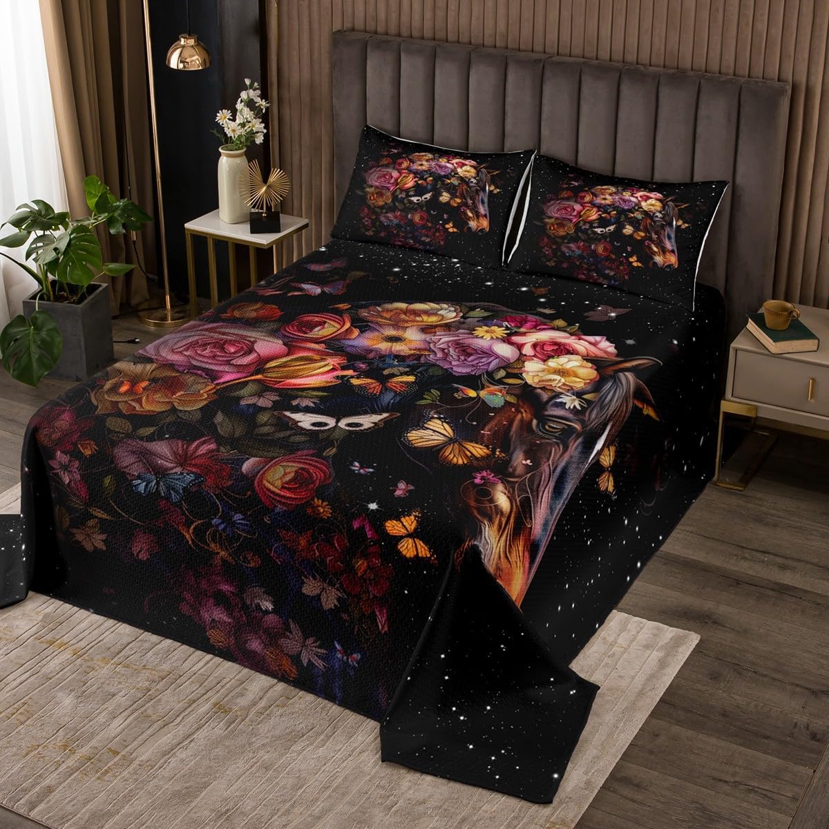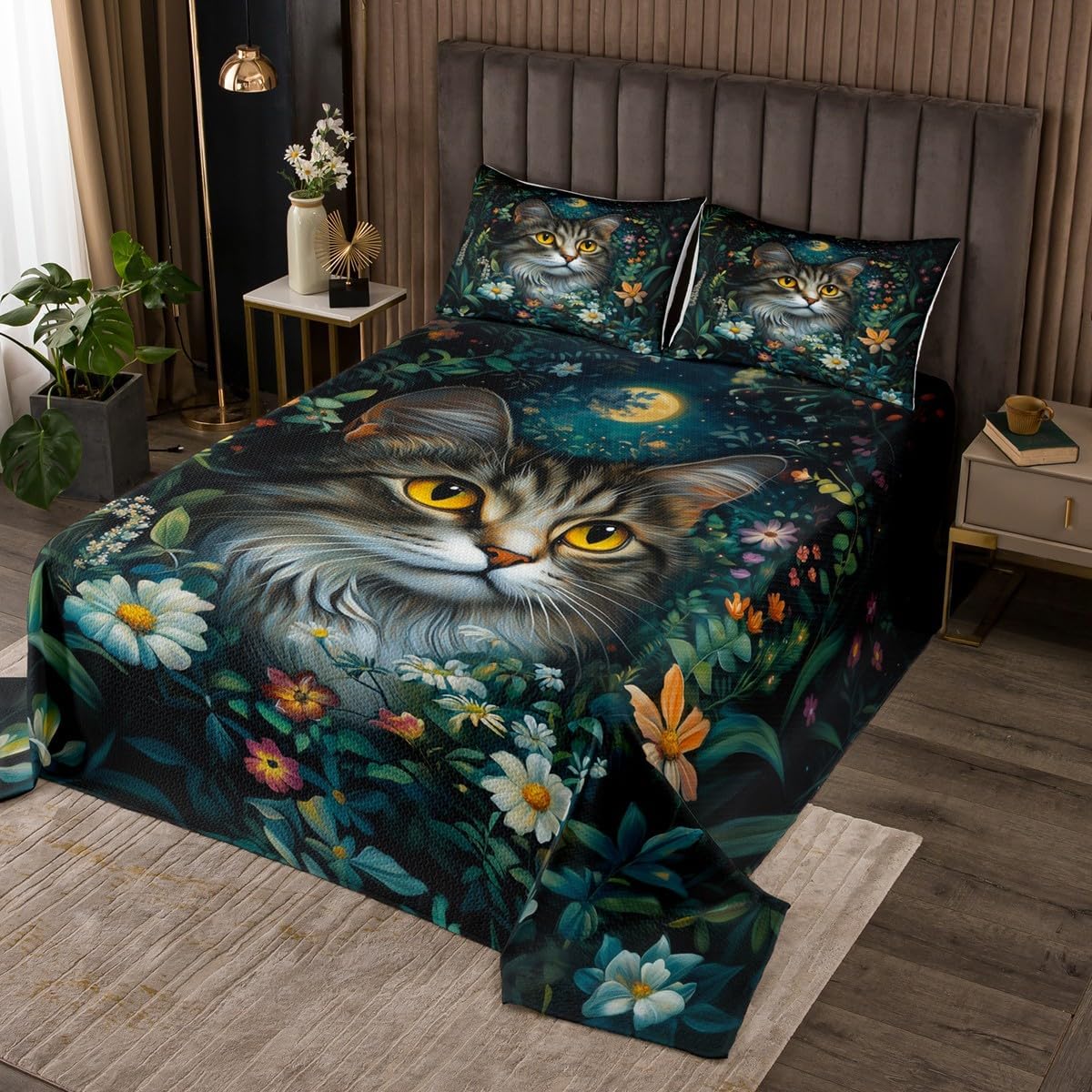 Package Include: Bedspread and Pillowcase. Makeover your bedrooms every season with our bedspread! Perfect item for your room, girls boys youth room, master bedroom. Size Information: Twin size quilted bedspread 68" W x 90" L and 1 quilted pillow sham 30" W x 20" L Queen size quilted bedspread 90" W x 90" L and 2 quilted pillow shams 30" W x 20" L King size quilted bedspread 104" W x 90" L and 2 quilted pillow shams 36" W x 20" L Useful and practical: A luxurious product for homes, dorm rooms, hotels, guest rooms. Practical to use for being polyester, feels like cotton which is Super Soft and Breathable. No chemicals used, No dye substance harming the health of you or your family. Unique design: Vivid Colors won't fade thanks to new 3D digital printing methods. These unique designs match well with various color palettes of your rugs, curtains, headboard, furniture, and all other decor accessories. Personalized: As manufacturers of digital printed home textiles, we follow current trends and bring you the latest home fashion. More Decor: Search "Manfei" to get more christmas theme, new year theme, autumn fall theme, any holiday theme, modern abstract, farmhouse rustic theme, simple pattern, garden flowers etc. home decoration. Note: The Bedspread and Pillow Shams are printed on the Front Side Only, the back of them are white colored. Comforter is Not Include in the set.