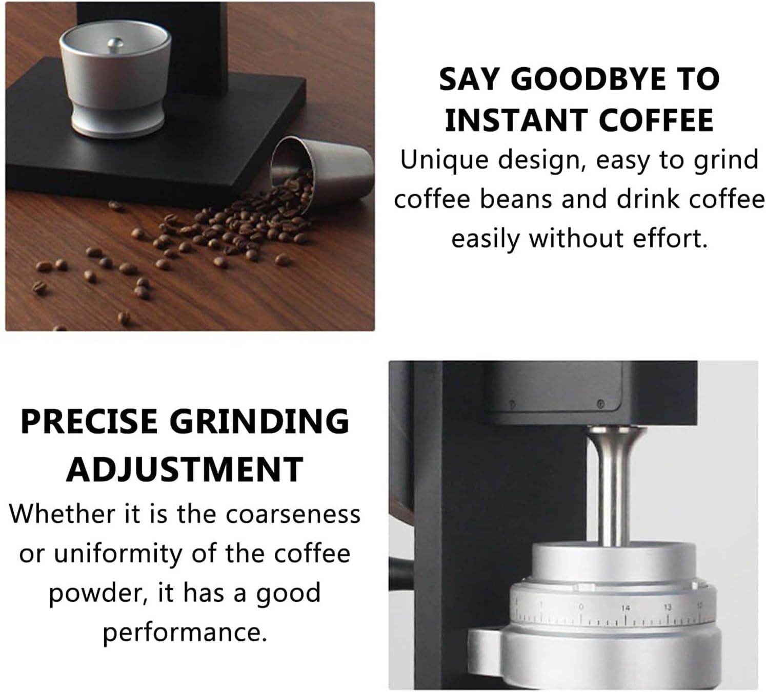 Specifications: Name: Professional hand-cranked grinder Color: Black Material: Aluminum Alloy, Steel Gross weight: 14kg Size: 21.5*21.5*43.5cm Usage: Manual Features: 83mm conical grinding disc, unique structure, less residual powder at the grinding head, easy to clean after use Applicable places: bars, restaurants, families, leisure bars, cafes, exhibition halls, enterprises and institutions Package includes: 1 x Coffee Grinder