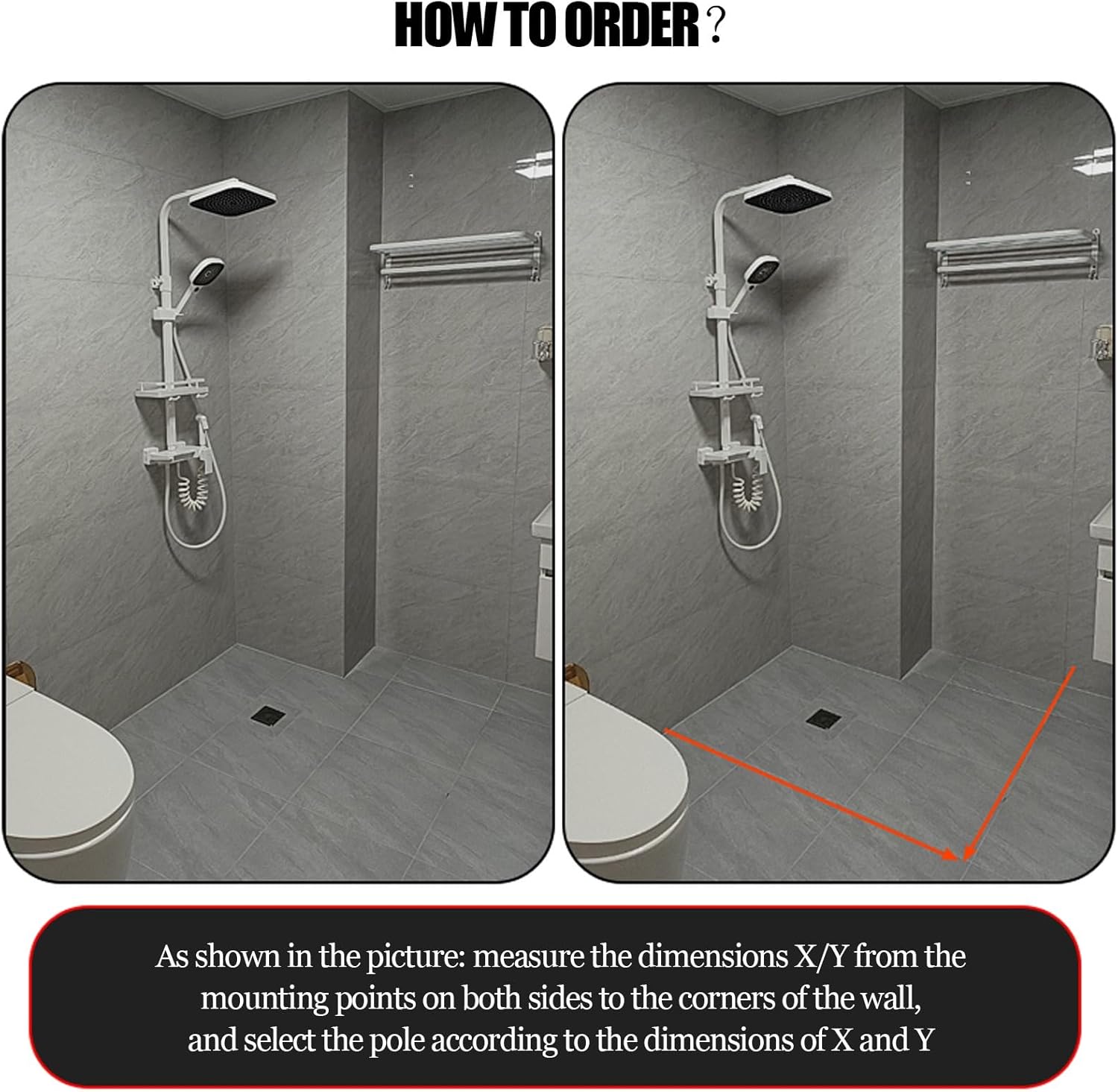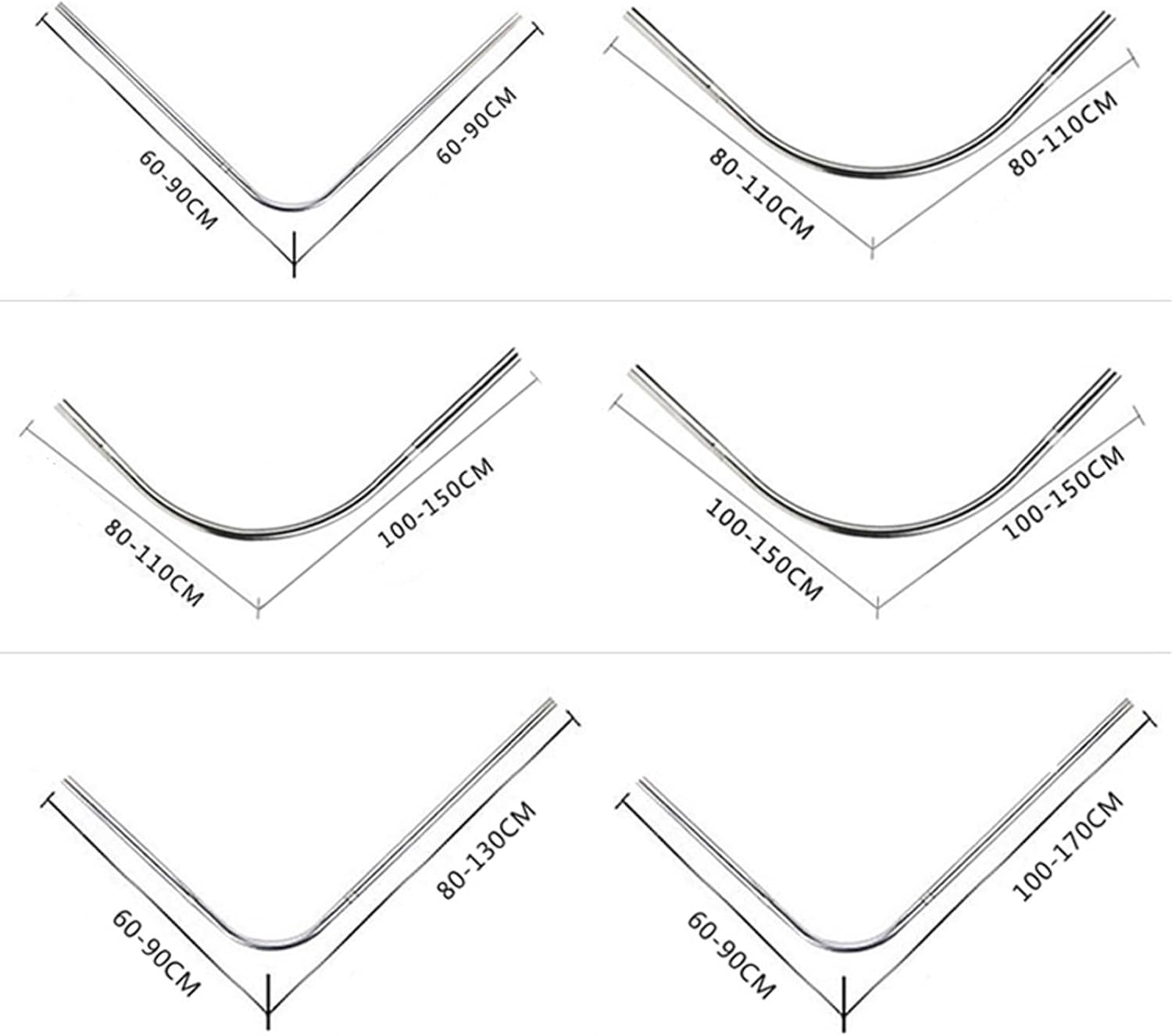L-Shaped Shower Curtain Rod for Right Angle Corner(90° corners) Shower Space, Adjusted to the Desired Corner Size for Bathroom, Bathtub, Changing Room, Cloakroom, Clothing Store, Single Apartment, Provides More Space for your Shower.Shower Curtain Rod the Design of the Sufficiently Long Force Arm of 2 bases, Which Enough to Keep the Shower Curtain Rod Level, No Need for Additional Ceiling Cords.So no Need to Hang the Shower Curtain in Sections.Specifications:Color: BlackMaterial:304 stainless steelSize: 60~90x60~90cm , 80~110x80~110cm , 80~110x100~150cm , 100~150x100~150cm , 60~90x80~130cm , 60~90x100~170cmPacking list:Shower curtain rod×1(NO shower curtain)Due to control, the package does not include glue.NOTES:1. Before buying, please check the size to prevent size errors.2. Your satisfaction is our top priority. If you have any questions, please contact me in time and we will help you as soon as possible.