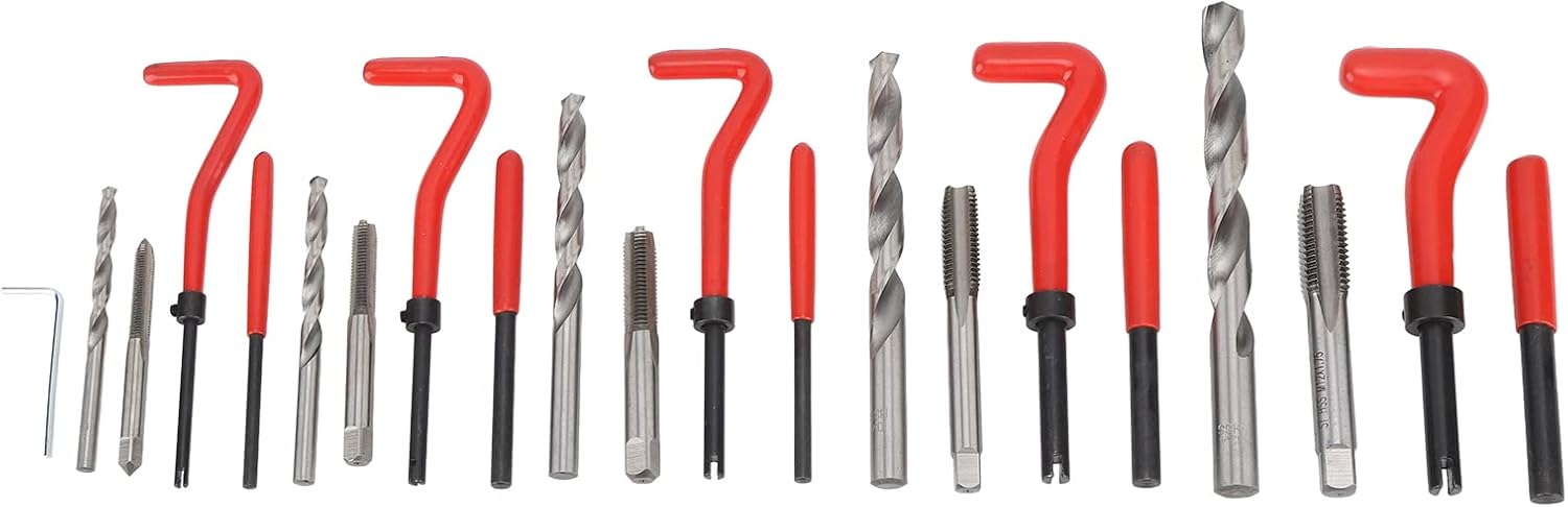 Item Type: Thread Repair KitMaterial: High Speed SteelSize: M5 x 0.8 x 6.7 mm, M6 x 1 x 8mm, M8 x 1.25 x 10.8mm, M10 x 1.5 x 13.5mm, M12 x 1.75 x 16.3mmPackage List:5 x Drill Bit 5 x Breaker 5 x Tap 5 x Spinner 110 x Spiral Ring Cover 1 x L Wrench 1 x Manual 1 x Storage Box