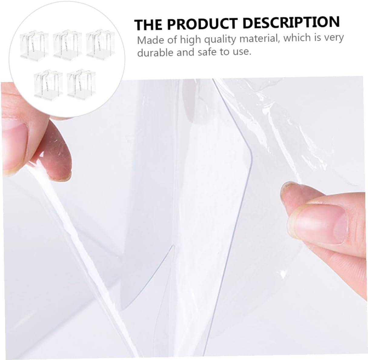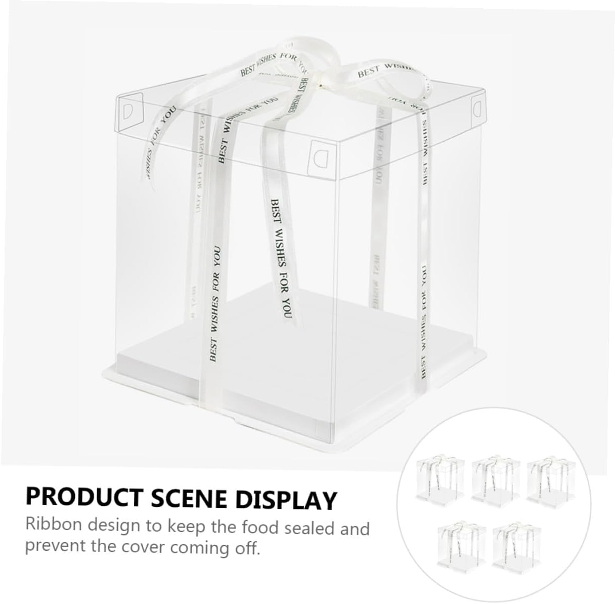 Package Include 5 x cake packaging boxes Features - Applicable: for 8 inch cake Cake Wrapping Case. - Material: Food grade white card, PET. - Color: White ( color for ribbon). - Size: 26.00X26.00X18.00cm/10.22X10.22X7.07inch. -Product Info:Birthday Cake Box - They can be used for shower, birthday party or other party Baking Cake Container. - Featuring reusable, it can be used for times and easy to clean Food Packaging Boxes. - , environmental protection, safe and . - Simple and practical design, and easy to use and carry Square Storage Container. - Transparent design can show off your cakes inside without exposing to the air Transparent Cake Boxes.Goods InformationTransparent Cake Boxes This is a practical cake box.Cake Carrier Sealing design can prevent leakage effectively.Square Storage Container Environmentally friendly material, safe and to use.Cake Wrapping Case With the ribbon handheld design, this cake box is very convenient to carry.Cake Storage Container This cake box can help you to pack your cakes and transparent design allows you see the cake directly