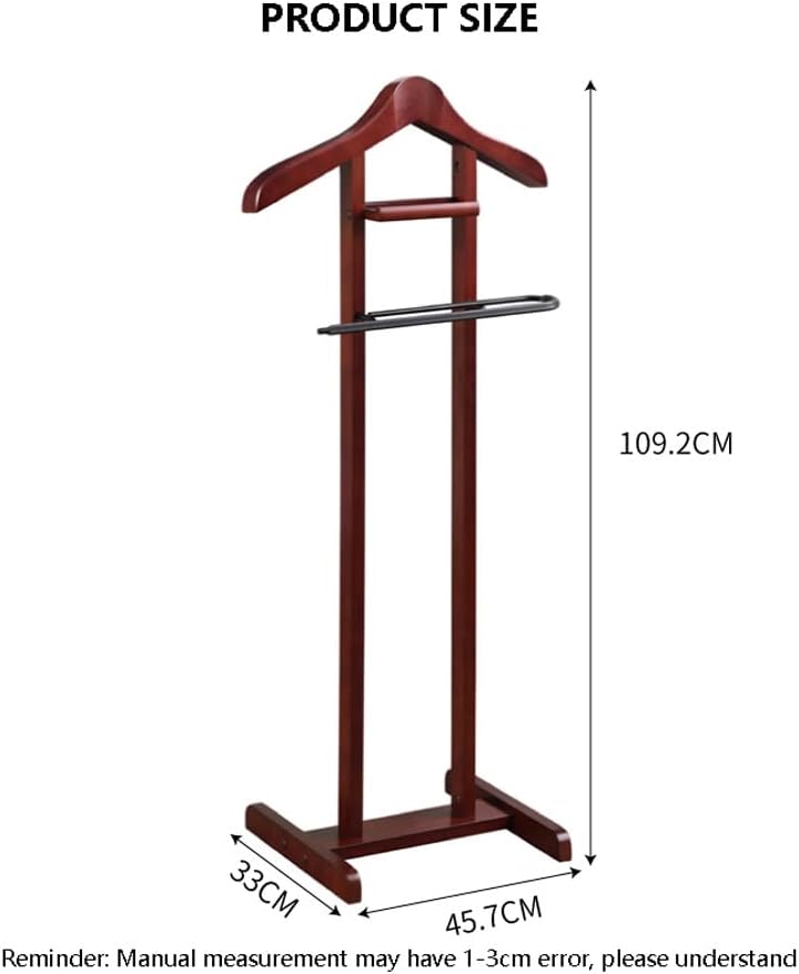 Looking for an efficient way to nize your wardrobe? Our Executive Clothes Valet Suit Rack Stand is the perfect solution for your daily dressing routine. This stylish wooden valet provides not only an elegant display for your suits but also convenient storage for your ties, wallet, change, and cell phone. No more frantic searches for your belongings in the morning; everything will be nized and ready for you to grab as you head out the door. Designed for versatility, this Portable Suit Coat Rack Hanger Stand fits seamlessly into any space—be it your bedroom, living room, or entryway. Its slim and elegant design allows it to fit in compact areas, making it suitable for both men and women. By using our valet stand, you can dress quickly while keeping your clothes wrinkle-free, ensuring you look your best every day. The natural wood finish complements various decor styles, from modern Nordic to vintage aesthetics. This valet stand also makes a thoughtful gift for friends, family, or co-workers who appreciate nization and style. **Specifications:** - Material: Solid Wood + MDF - Assembly: Requires assembly **Package Contents:** - 1 x Suit Valet Floor Stand **Please Note:** - Colors may vary slightly due to lighting and display settings. - Hand-cut products may have a 0-3CM size variance, which is normal. - For any inquiries, please contact us, and we'll respond within 24 hours. Elevate your nization with our Executive Clothes Valet Stand and experience the convenience of a well-arranged wardrobe.