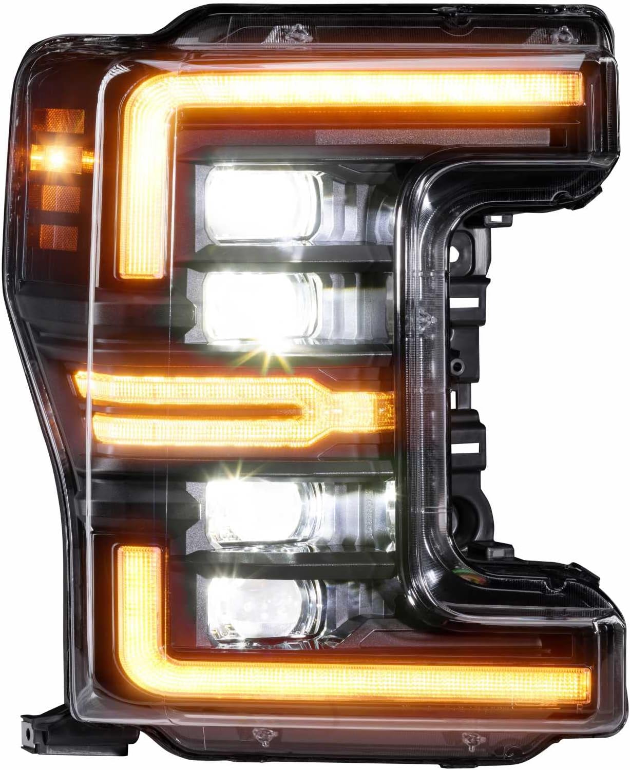Game Changer: The game has just changed, again. If you've got a 17-19 Super Duty and you paid extra for the OEM LED headlights, well... hind sight hurts doesn't it? If youÃÂre ready for an upgrade, the Morimoto XB LED headlights for the Ford Super Duty should be the first thing on your wish list. It's hard to imagine anything better than this when it comes to looks, performance, and functionality. They are the full package.Future Spec: Alright so where do we begin? Lets throw subjectivity out the door and talk about how great the Gen II Super Duty LED headlights from Morimoto look. Although they have four projectors like the original recipe, the internals on these are next level... but not over-done... everything is just perfect. They could pass for the OEM LED headlights on 2030 model year Super Duty. Ultra modern, but not over the top.Daytime Running Lights: The daytime running light shares the same overall shape as the OEM LED headlights on the newer 2020 trucks, but it's way brighter ñ and has that cool Y-shaped optic in the middle. The same optics do double duty as the turn signals - which like other XB LED headlights from Morimoto feature the full sequential setup, but can be also be ran in an instant-on/off mode for folks who want something a little more conservative.Startup Sequence: When the daytime running light first kicks on, the projectors will illuminate in a two-stage sequence before turning back off. Forewarning: This is addicting... so you may find yourself wasting time out in the driveway starting the truck repeatedly just to watch. Though that does absolutely nothing for performance, the guys at Morimoto have not overlooked the importance of light output.Unmatched Visibility: These use a generation of advanced Bi-LED projectors that produce a ton of light output. You get four low beams per light, Yes, that's 8 low beam optics, two of which do double duty as the high beams (making 4 high beam projectors). The first-gen headlights were much better than the OEM halogen and OEM LED headlights, and the Gen II takes it to the next level with 57% more intensity beyond that, making them the undisputed category king when it comes to headlight upgrades for the Super Duty.DOT Approved: All that goodness, and the Morimoto XB LED headlights for the Ford Super Duty are still fully compliant. Their quad-projector optics meet exceed all SAE, DOT, and FMVSS108 standards. The US market lights will be equipped with amber side markers as well.Plug and Play: The Installation is relatively easy too. These headlights are designed to work on your truck without any modifications. They will plug into the factory connectors and fit flush with all pre-existing mounting points. No error codes, no flickering, hyper-flashing, or radio interference. They can easily be removed and will not void your factory warranty.