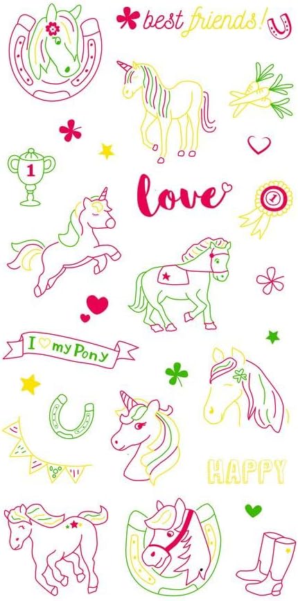 Moses Horse neon stickers with 27 stickers. All information at a glance: 1 sticker sheet with 27 stickers. Self-adhesive. Reusable.