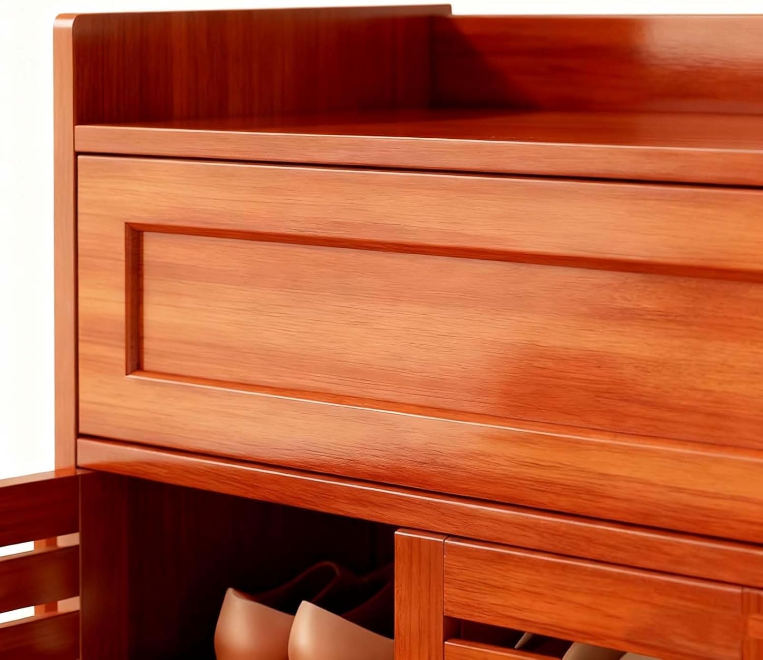 This bamboo shoe cabinet offers an elegant solution for organizing your footwear, making it ideal for families, renters, or anyone looking to maintain a clutter-free entryway. With ample storage space, the top layers are perfect for seasonal shoes, while the dedicated bottom layer accommodates tall boots, ensuring everything has its place. Crafted from durable bamboo, this shoe rack not only serves a practical purpose but also enhances your home decor, seamlessly fitting into hallways, living rooms, and bedrooms. Maintaining cleanliness is simple; just wipe the surface with a damp cloth to keep it looking pristine without the worry of soaking it. This enclosed design protects your shoes from dust, ensuring they remain in top condition and ready to wear whenever you need them. Product dimensions: 95cm x 33cm x 115cm. Transform your space with this stylish and functional bamboo shoe cabinet, keeping your home organized and inviting.