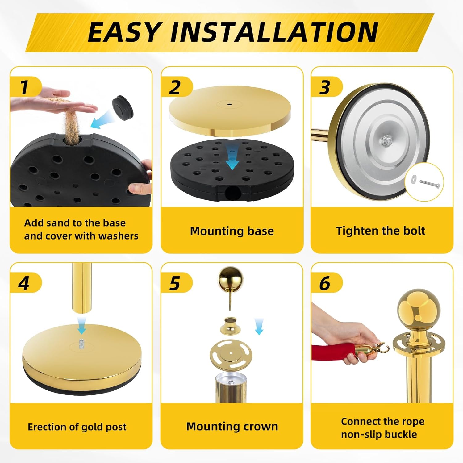 This is our top stainless steel stanchion posts is flawless and the poles nice and shiny.it is ideal for theater, hotel, wedding, party and ceremony.It has high quality with high-class stainless steel, PP chassis,it has the properties of acid and alkali resistance and it's very durable. The design of red velvet rope is stylish. Come and buy it and you won't regret it. Specifications: Color:Gold and black Material: stainless steel and red velvet Package includes: 4 x poles, 2 x ropes, 4 x chassises