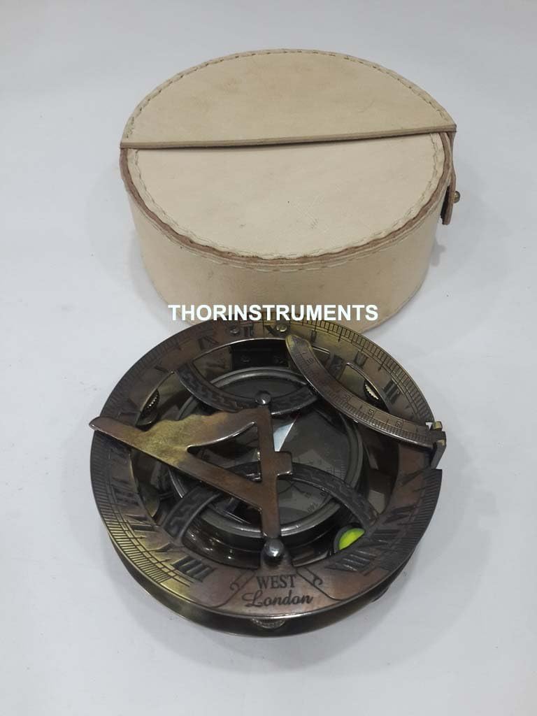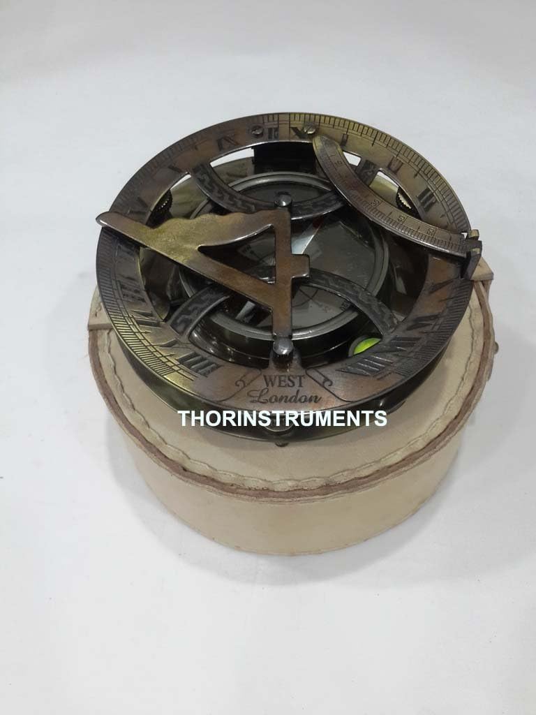 Nautical Solid Brass Round Sundial Compass Two Ton Finish