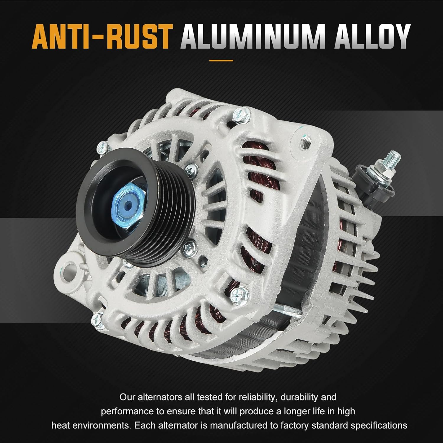 Compatible with:2011-2017 Nissan Quest 3.5L 2009-2014 Nissan Murano 3.5L 2007-2010 Nissan Altima 3.5L 2009-2010 Nissan Maxima 3.5L Item Specifications:Voltage: 12Rotation: CWAmperage: 130Pulley Class: S7Regulator: IRFan Type: IFReplace for:23100-1AA1A, 23100-1AA1B, 23100-JA11A, 23100-JA11AR, 2310M-JA11BRW, A003TJ1791